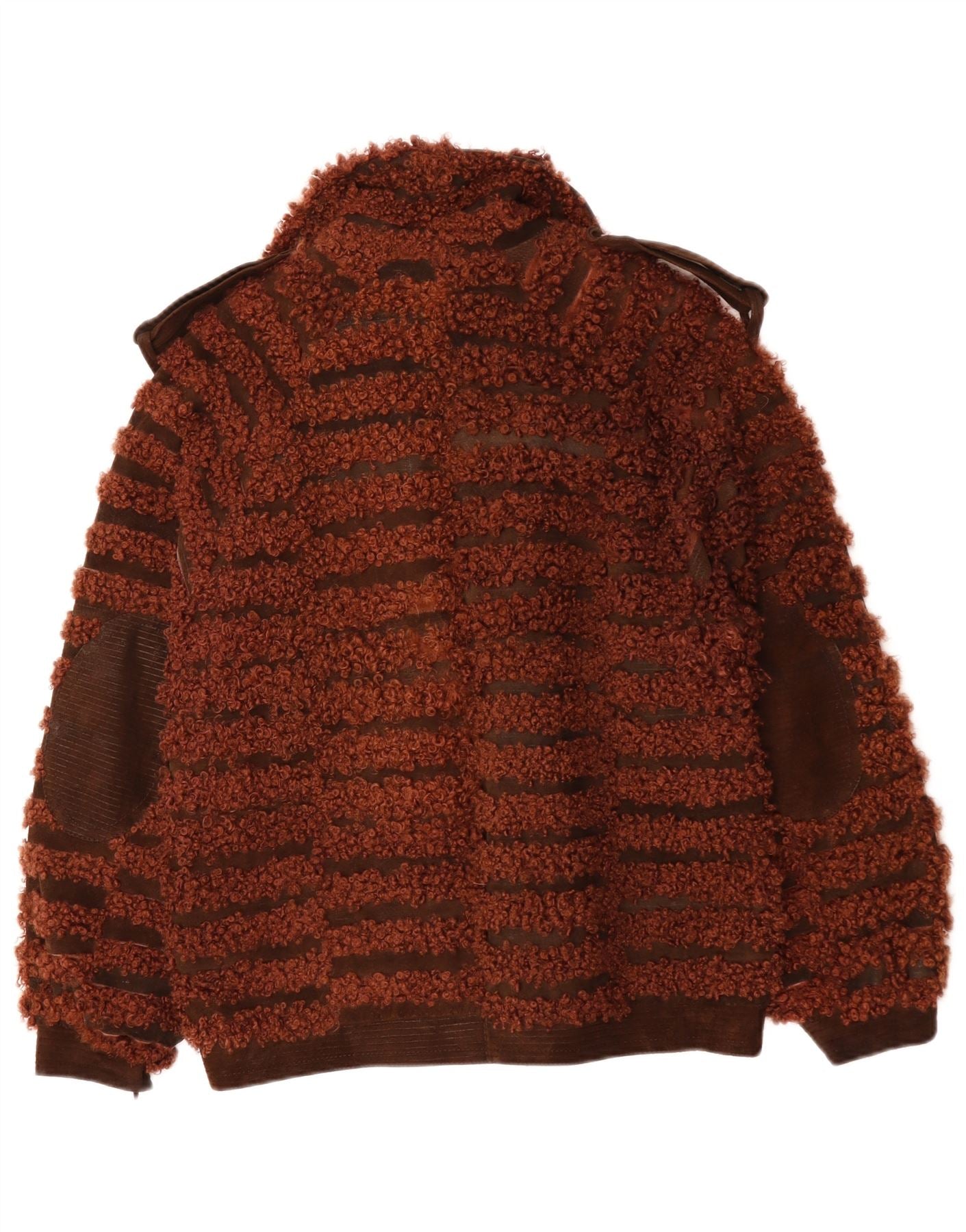 VINTAGE Veste Bomber Femme UK 16 Grand Marron Rayé