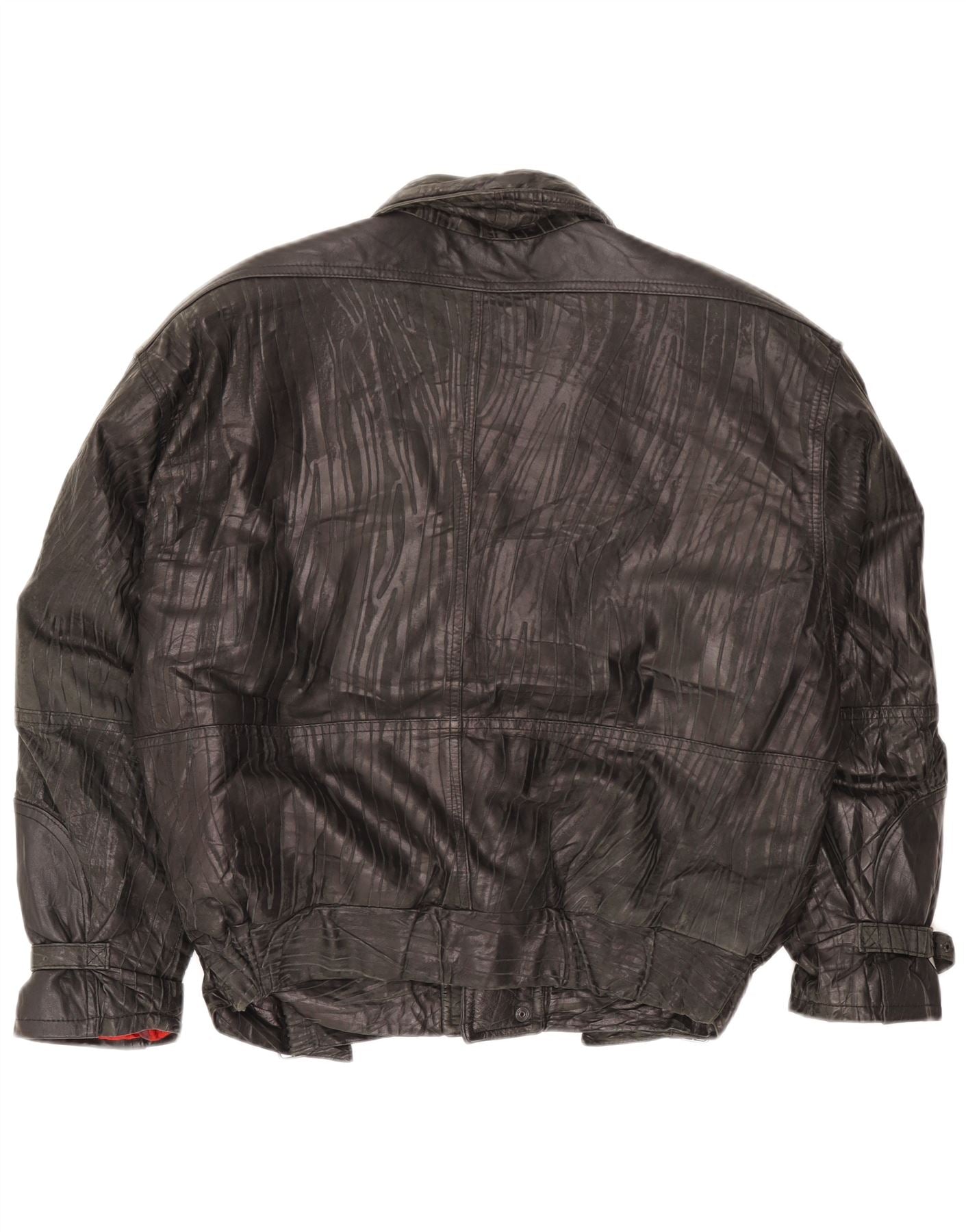 veste en cuir bomber femme vintage IT 54 3XL Noir Rayé