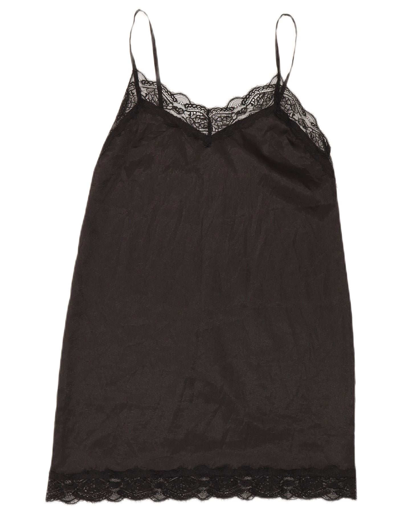 VINTAGE Femmes Cami Top UK 12 Moyen Noir