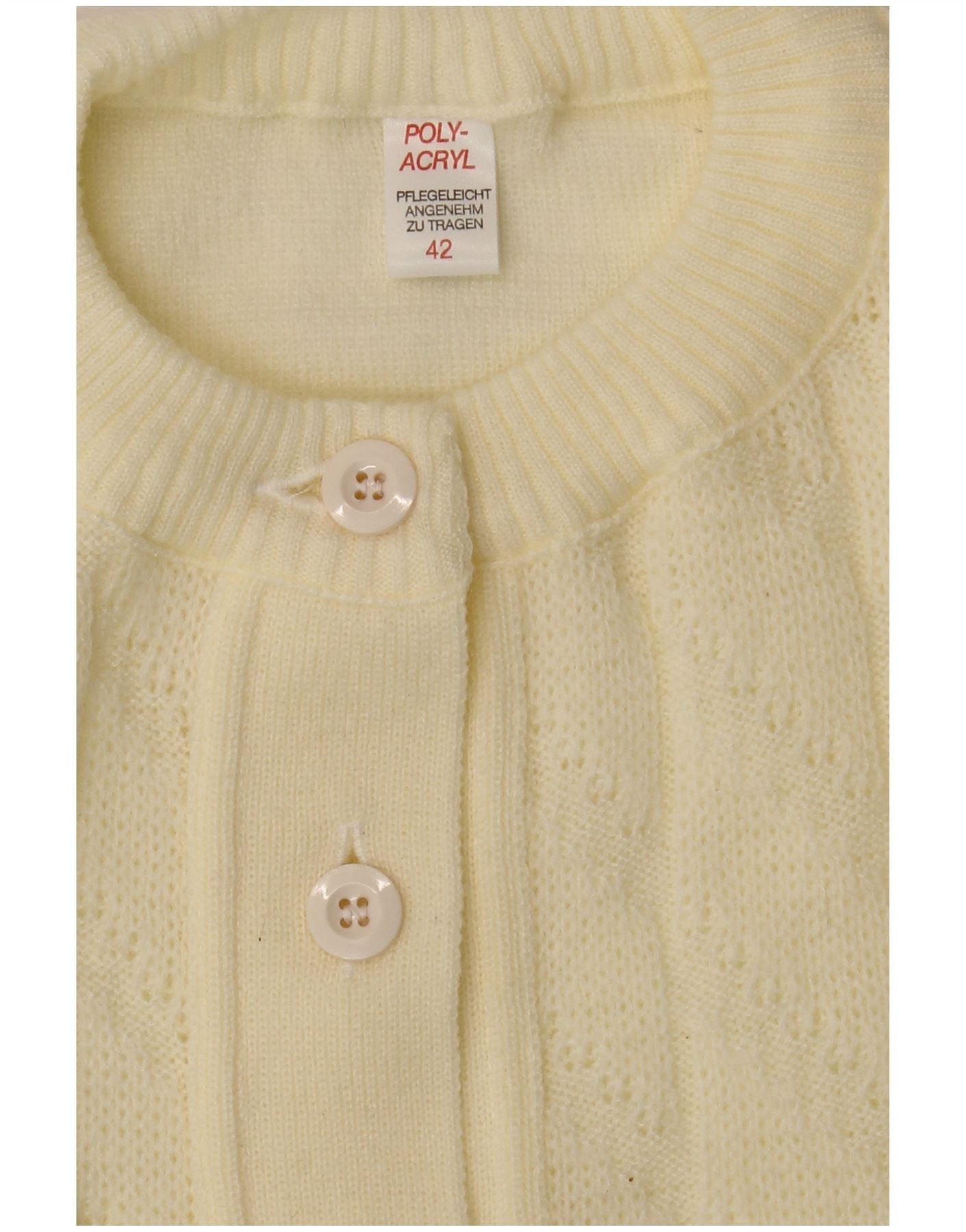 VINTAGE Pull Cardigan Femme IT 42 Acrylique Blanc Cassé Moyen