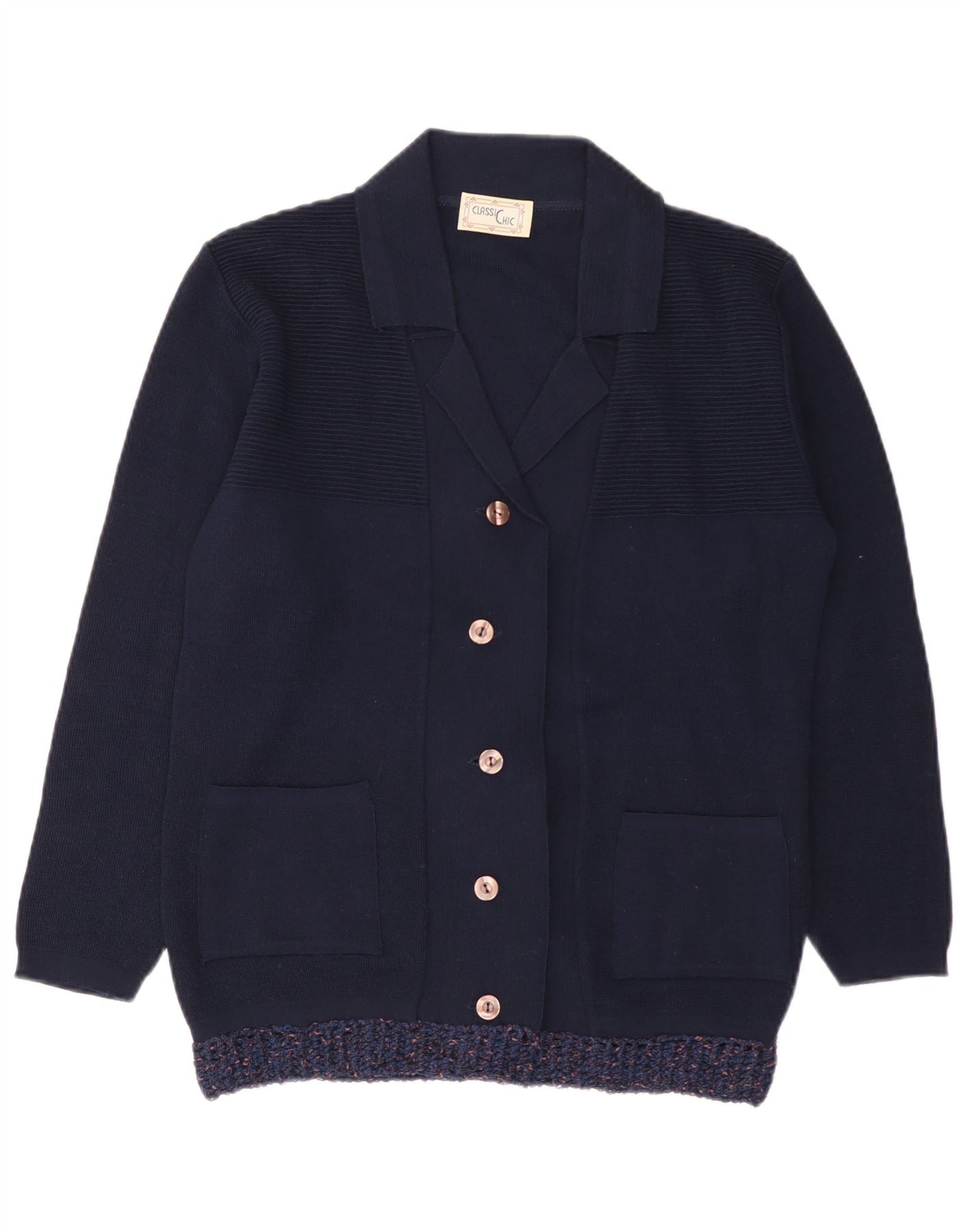 vintage Femme Cardigan Pull IT 48 XL Bleu Marine Acrylique