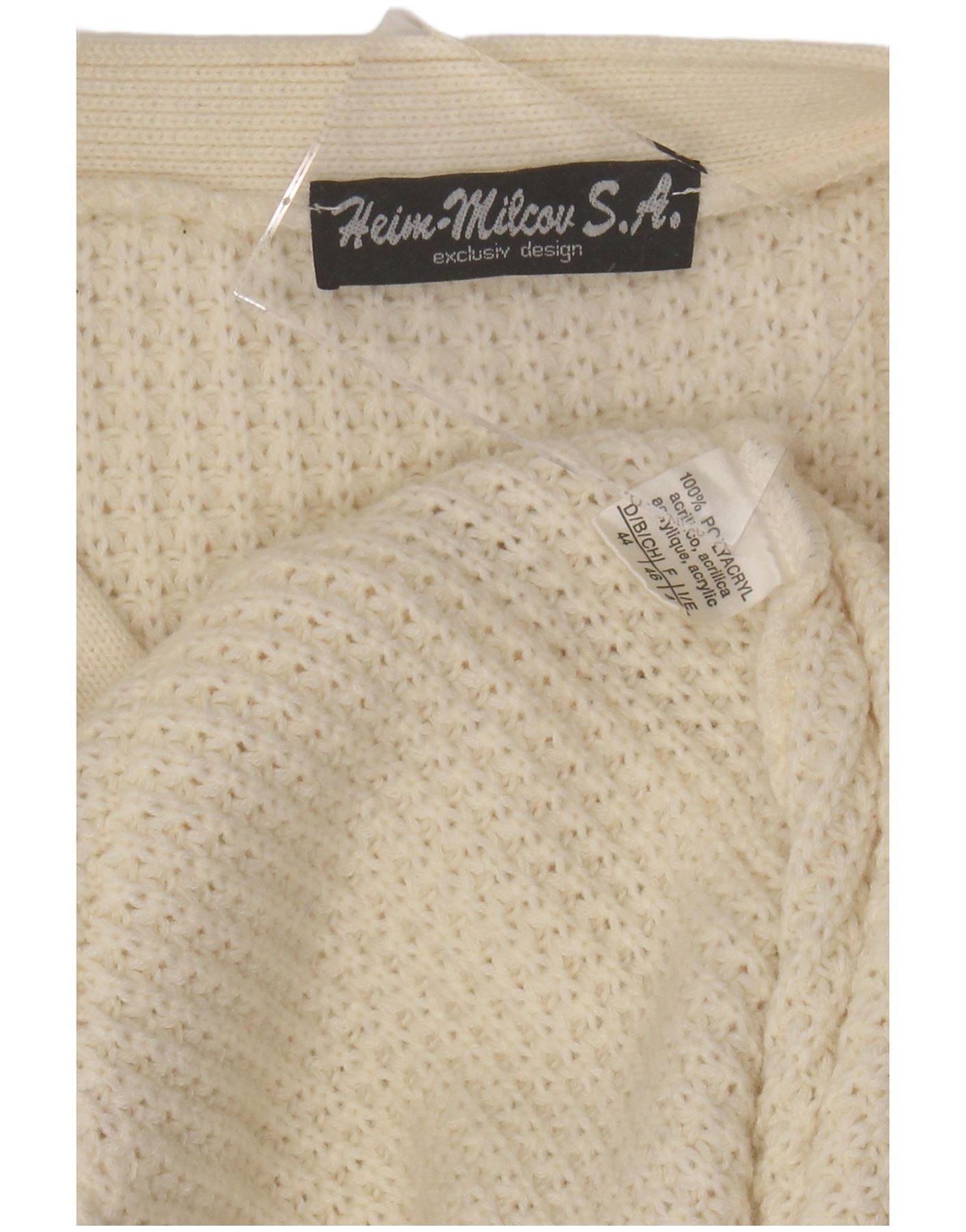 VINTAGE Pull Cardigan Femme IT 48 XL Polyacrylique Blanc Cassé