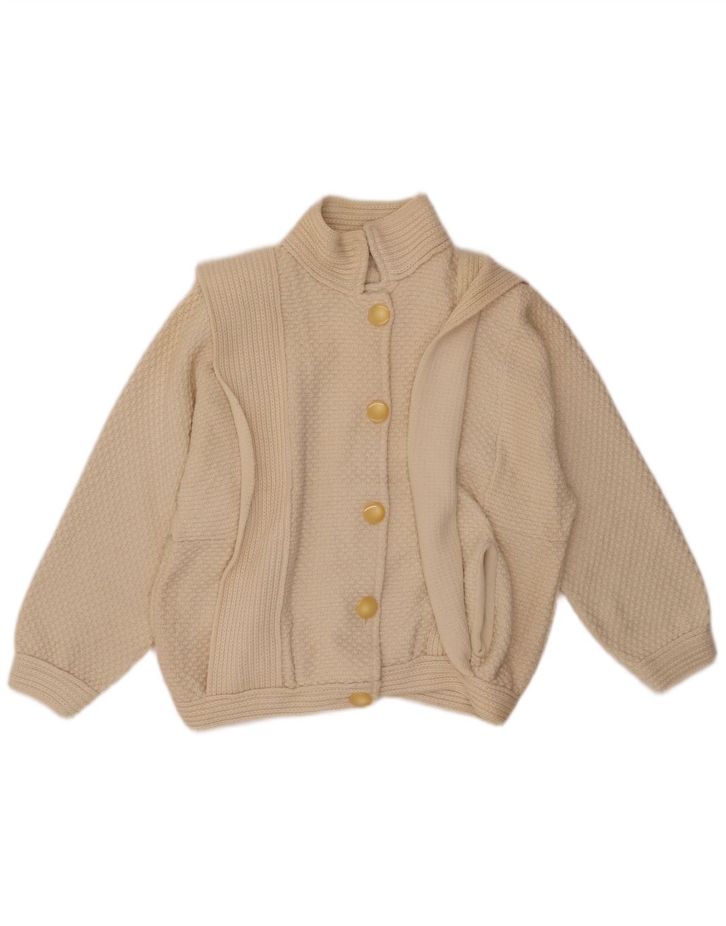 VINTAGE Pull Cardigan Femme UK 14 Beige Moyen