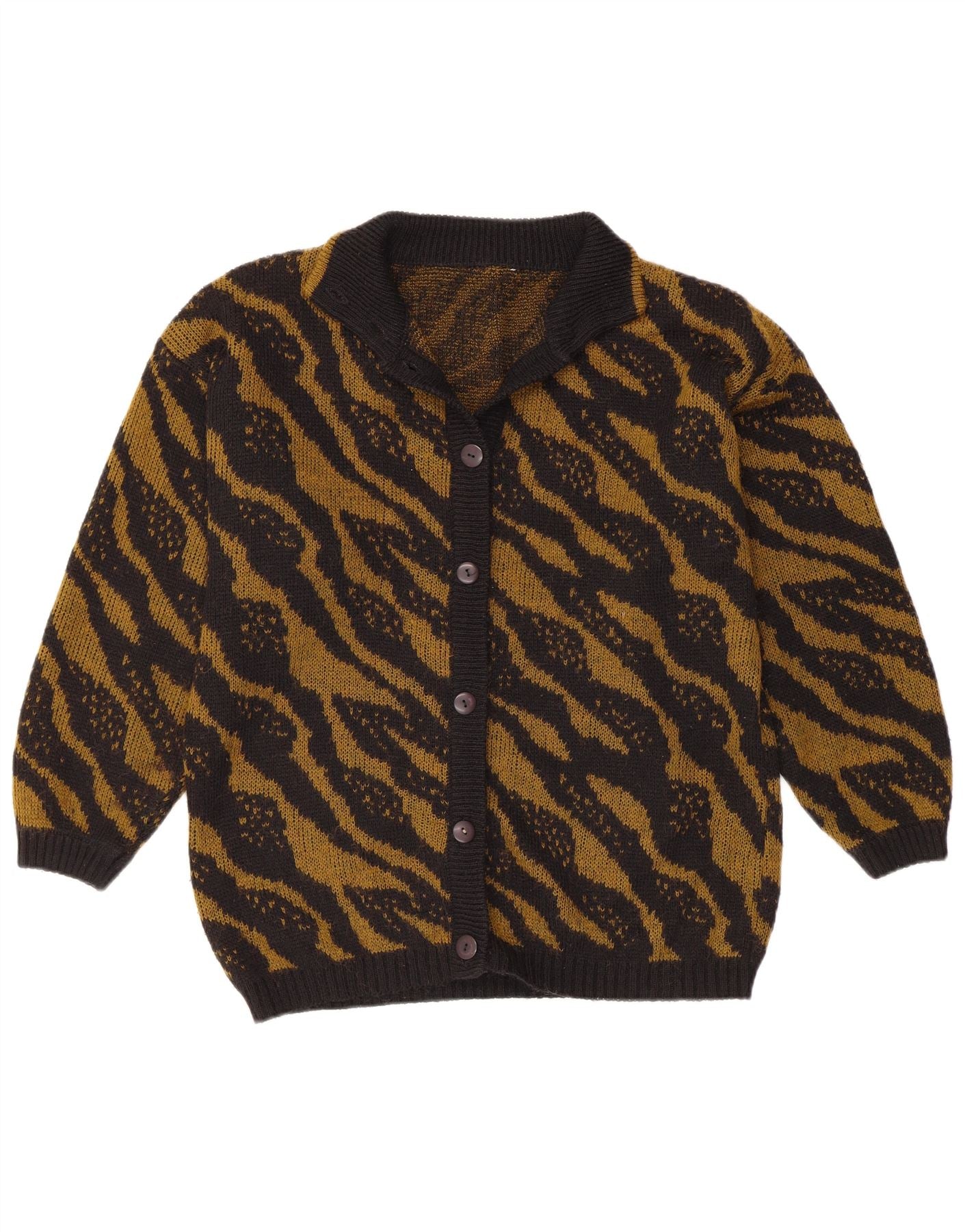 VINTAGE Femme Cardigan Pull UK 16 Grand Noir Rayé