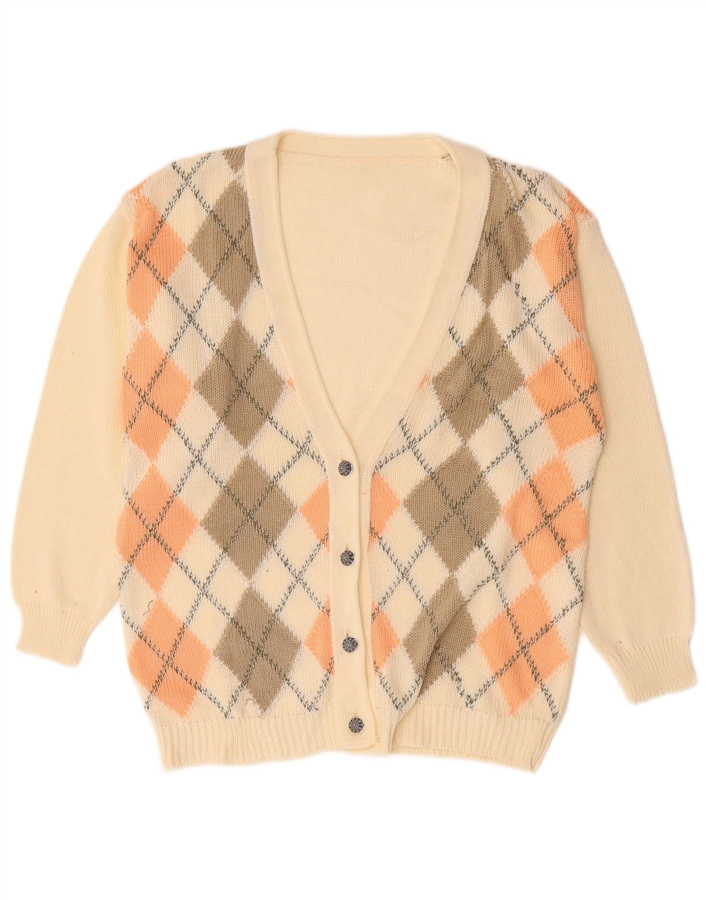 vintage Femme Cardigan Pull UK 18 XL Off White Argyle/Diamant