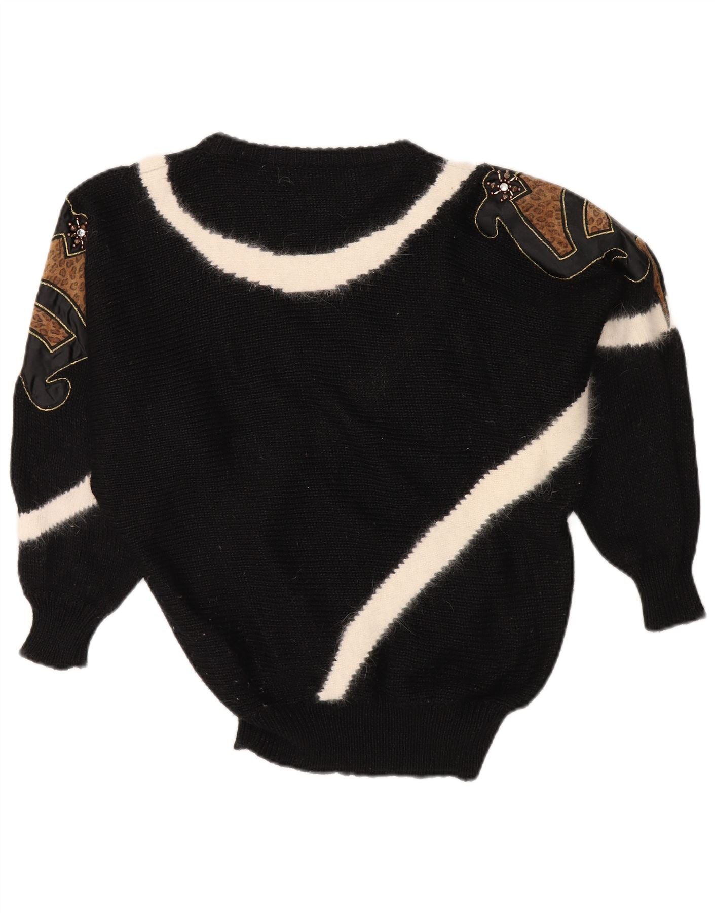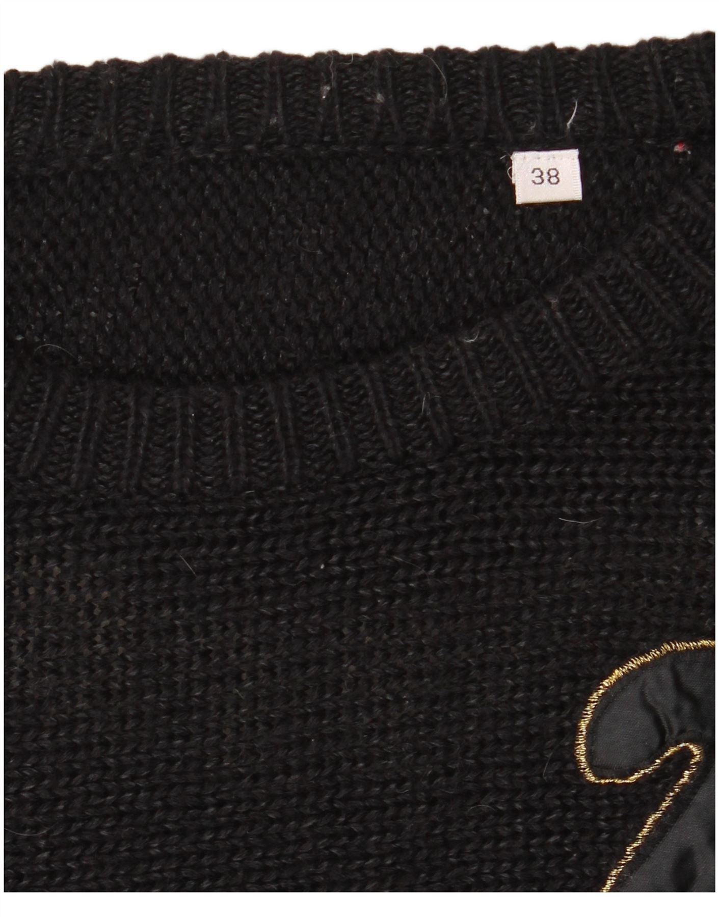 VINTAGE Femme Crew Neck Jumper Pull EU 38 Medium Black Colourblock