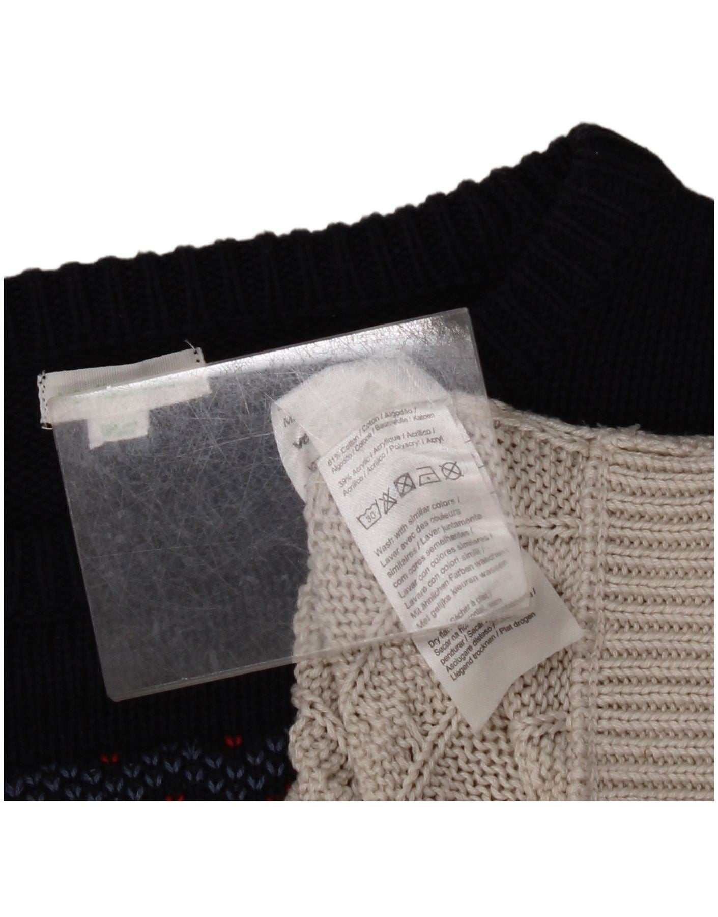VINTAGE Femme Crew Neck Jumper Pull UK 14 Moyen Gris Fair Isle Coton
