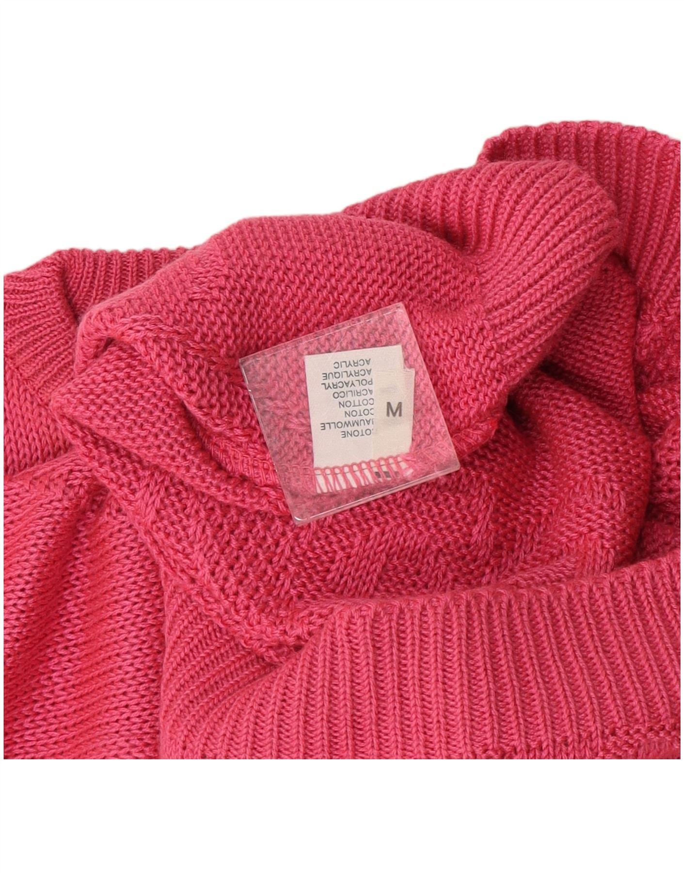 vintage Womens Crew Neck Jumper Pull UK 14 Coton Rose Moyen