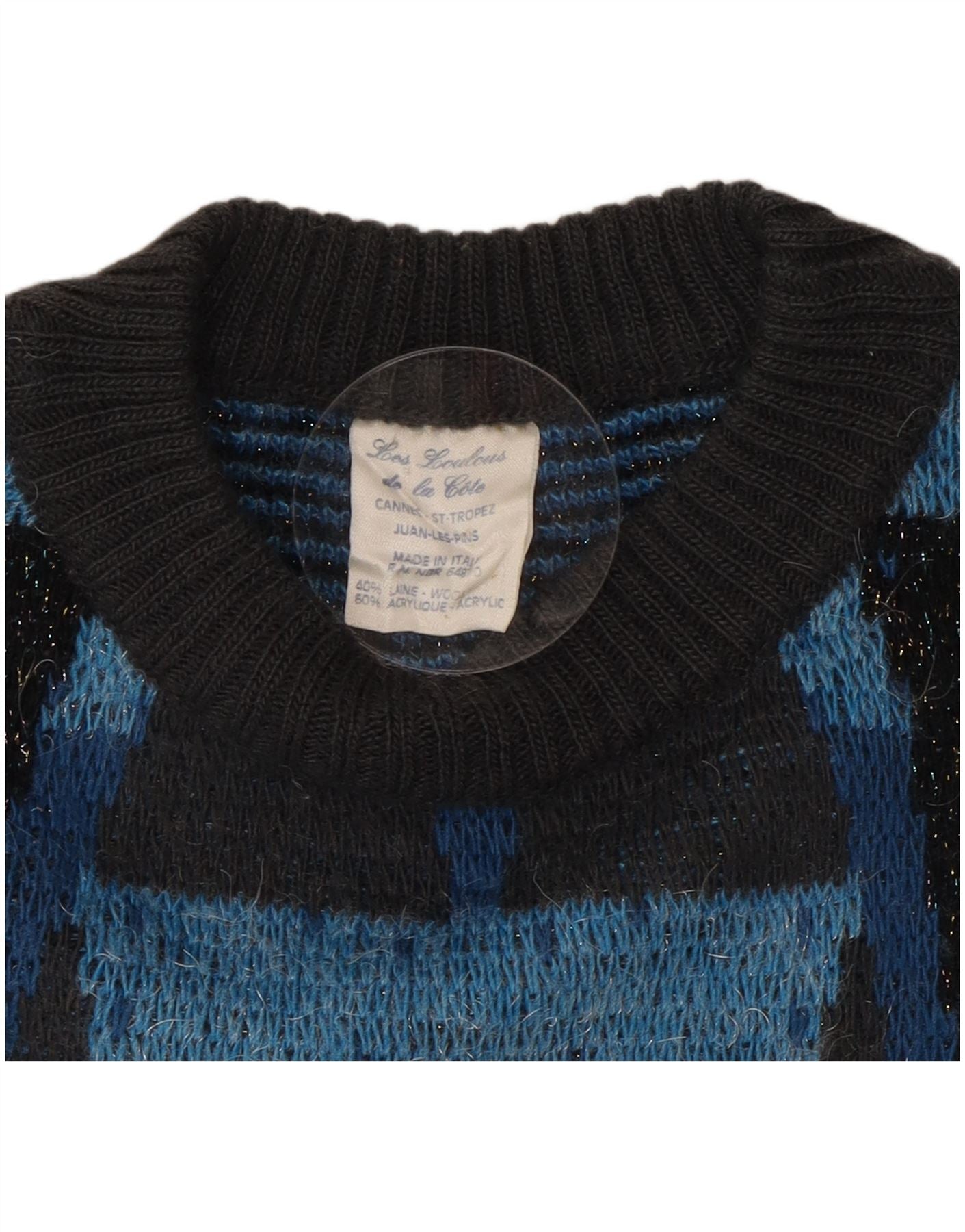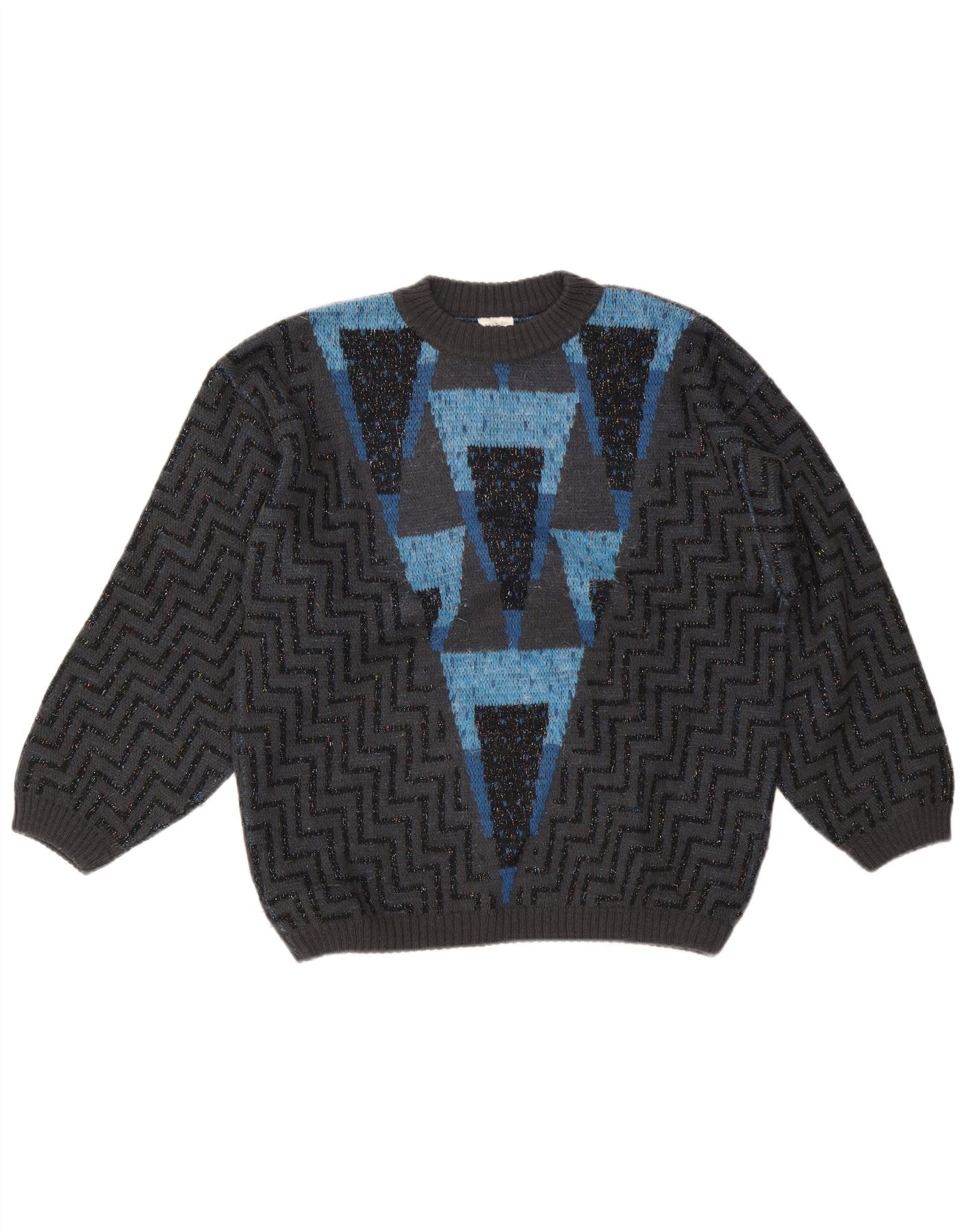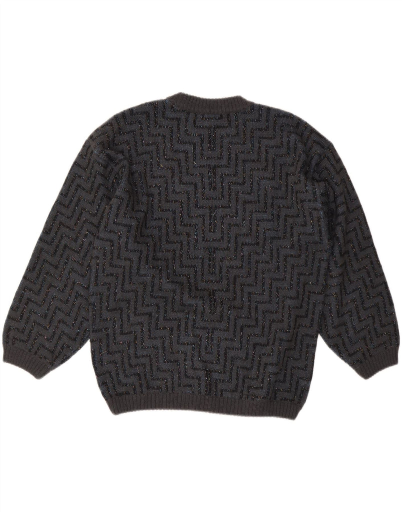 VINTAGE Femme Crew Neck Jumper Pull UK 16 Grande Laine Gris Chevron