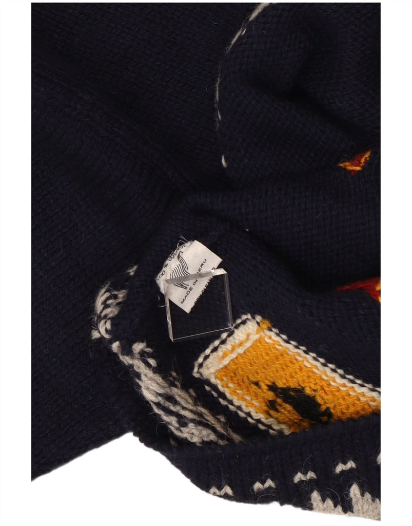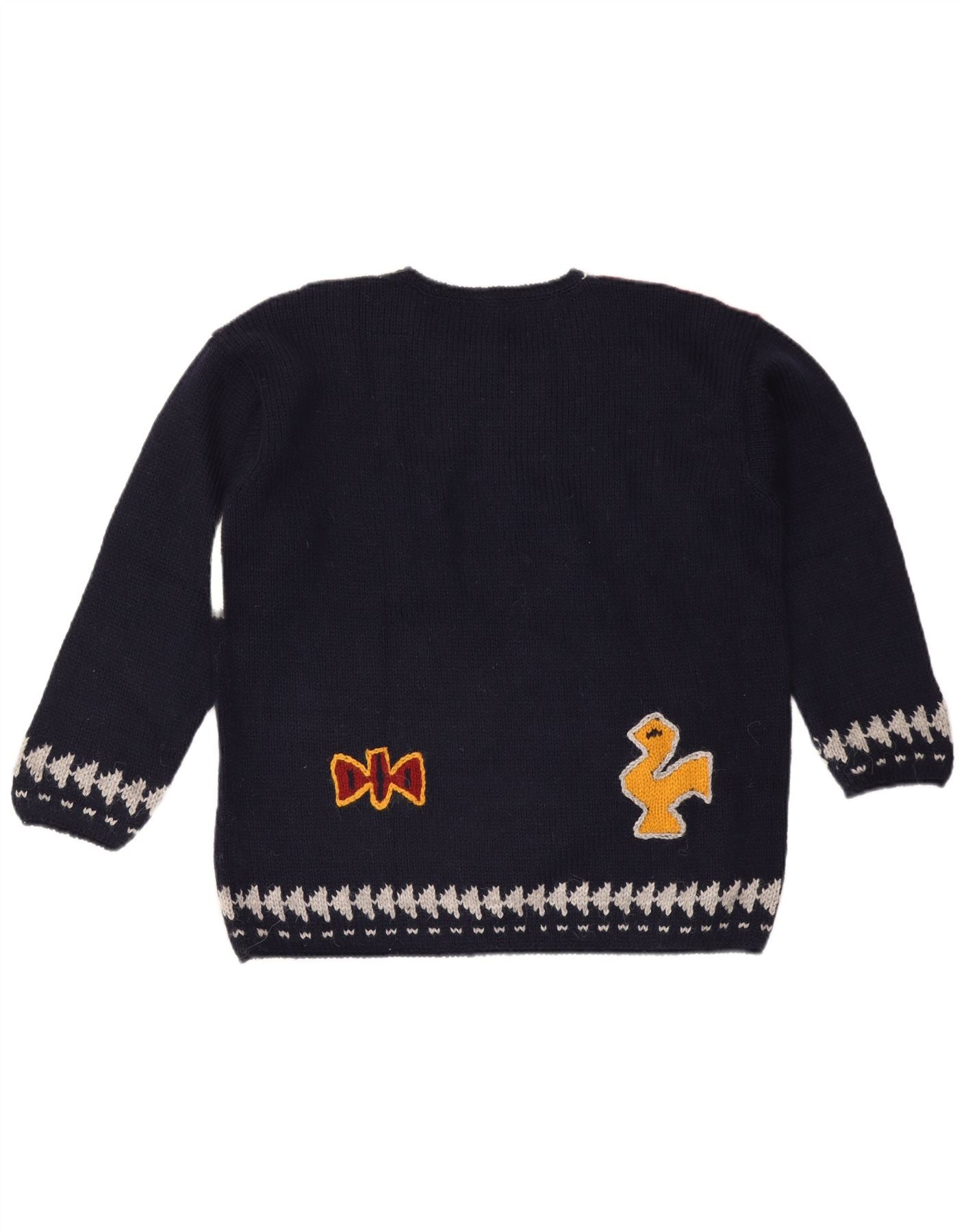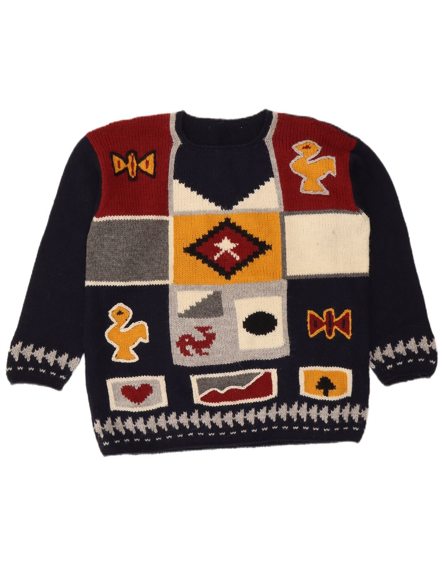 VINTAGE Femme Crew Neck Jumper Pull UK 16 Grand Bleu Marine Géométrique