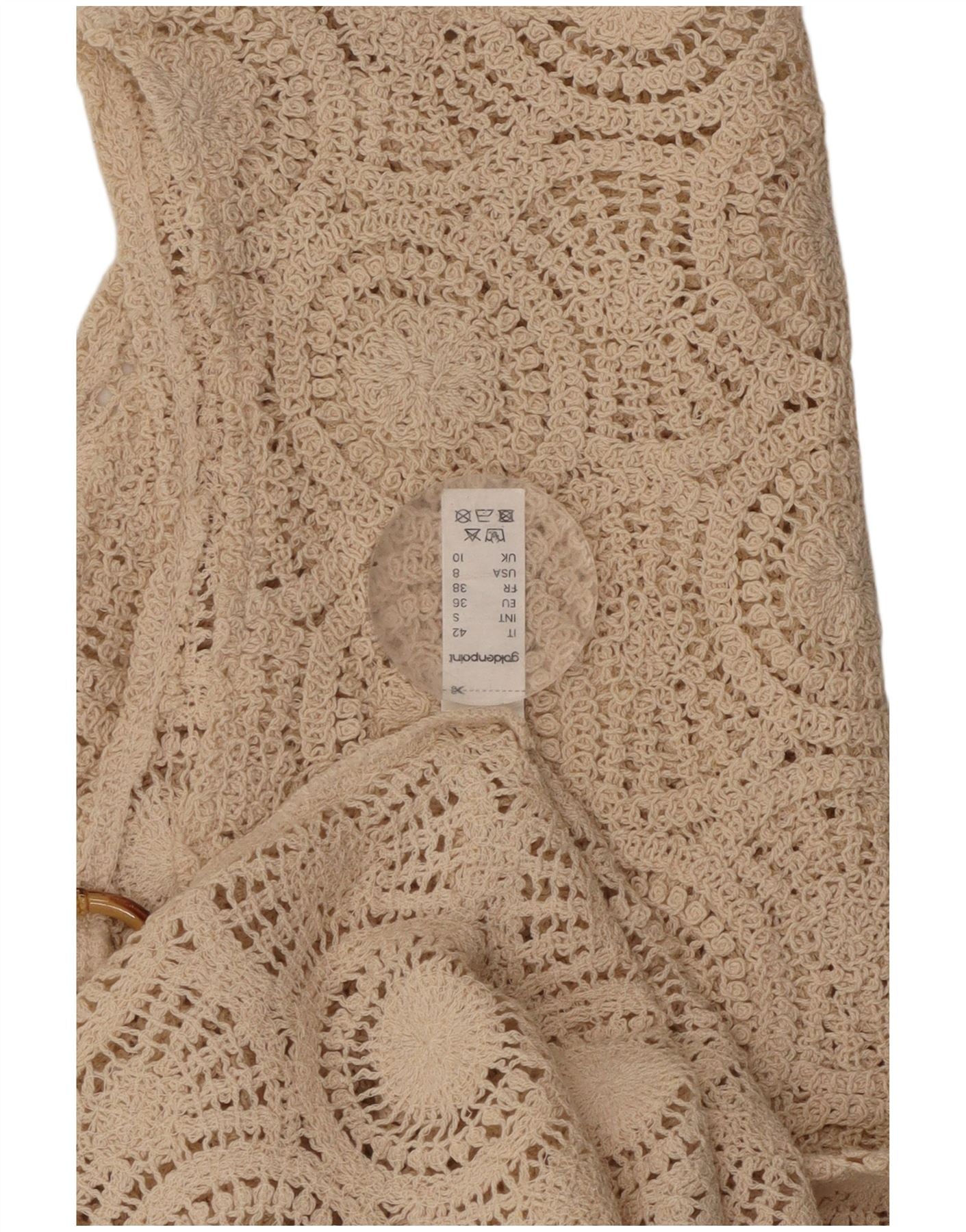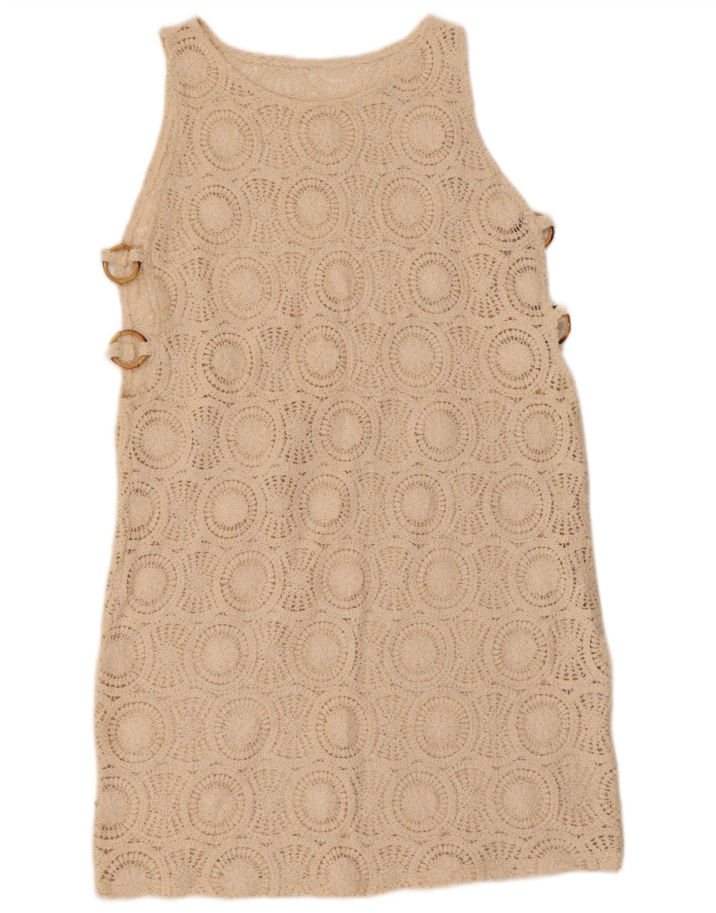 VINTAGE Femmes Crochet Sans Manches Shift Robe UK 10 Petit Coton Beige