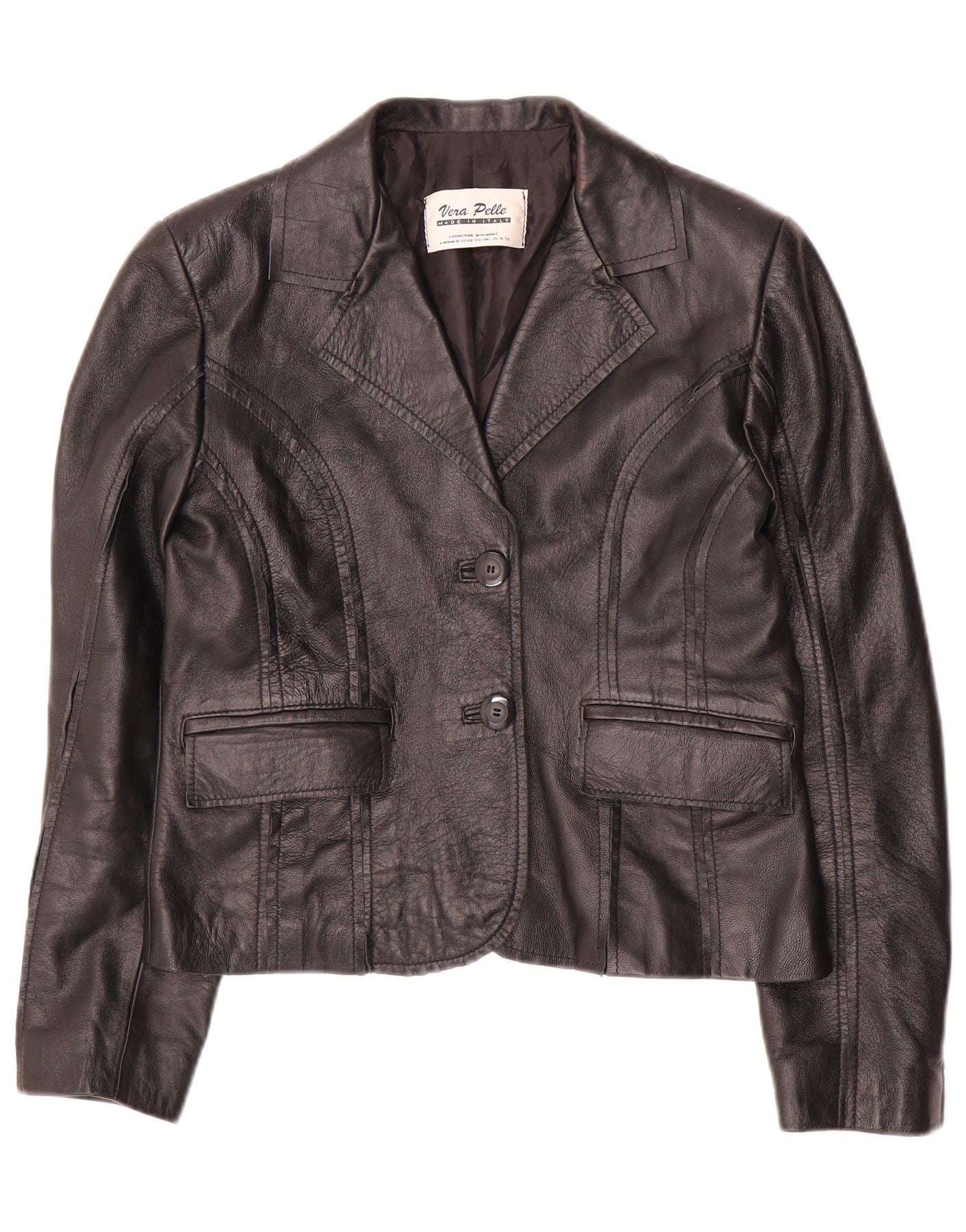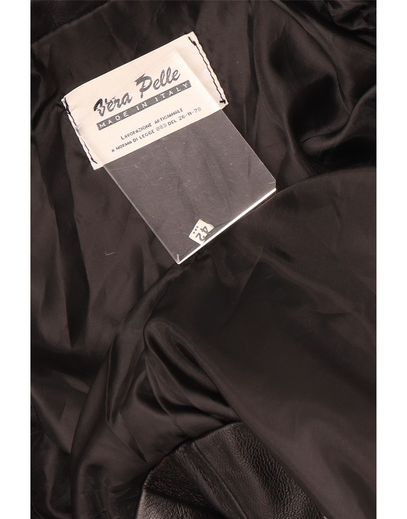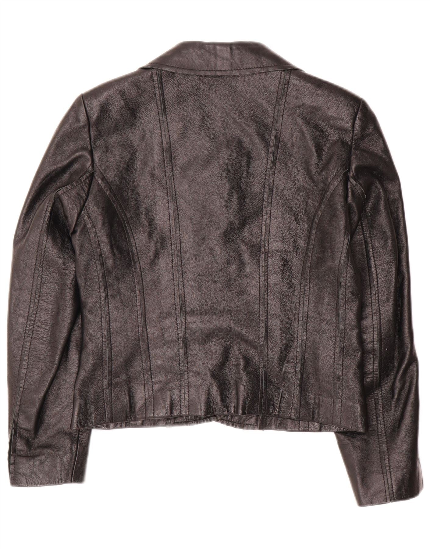 VINTAGE Veste Blazer Crop 2 Boutons Femme IT 42 Cuir Noir Moyen