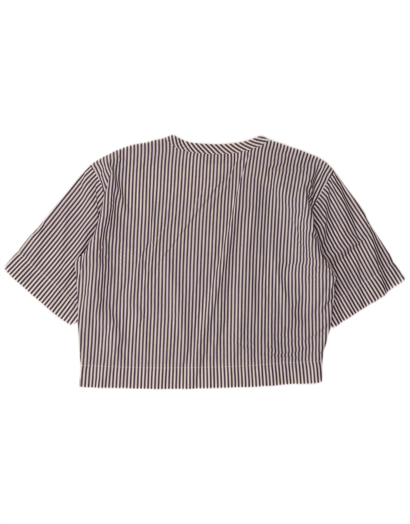 VINTAGE Femmes Crop Blouse Top UK 14 Grande Rayure Bleu Marine