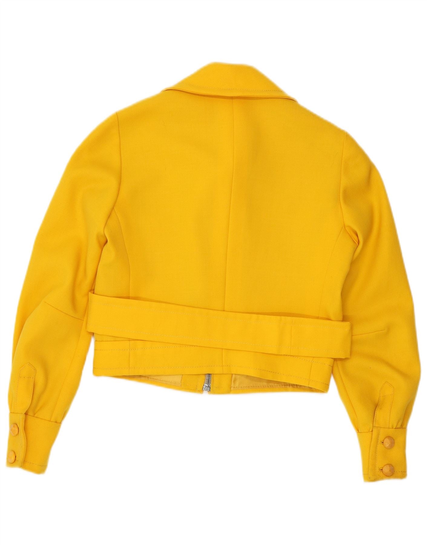 VINTAGE Femmes Crop Bomber Jacket UK 8 Petit Jaune
