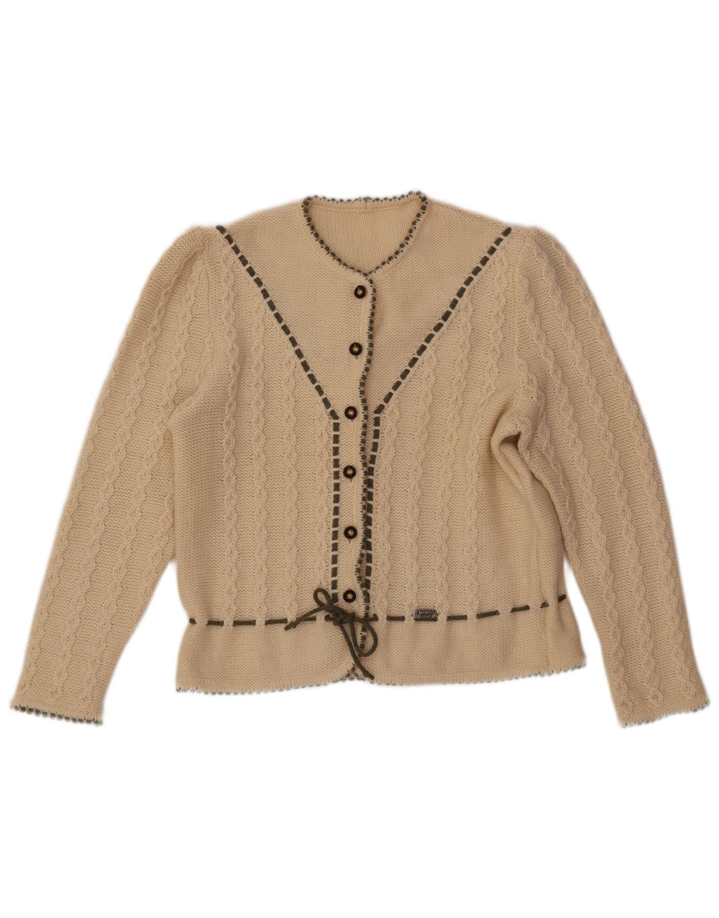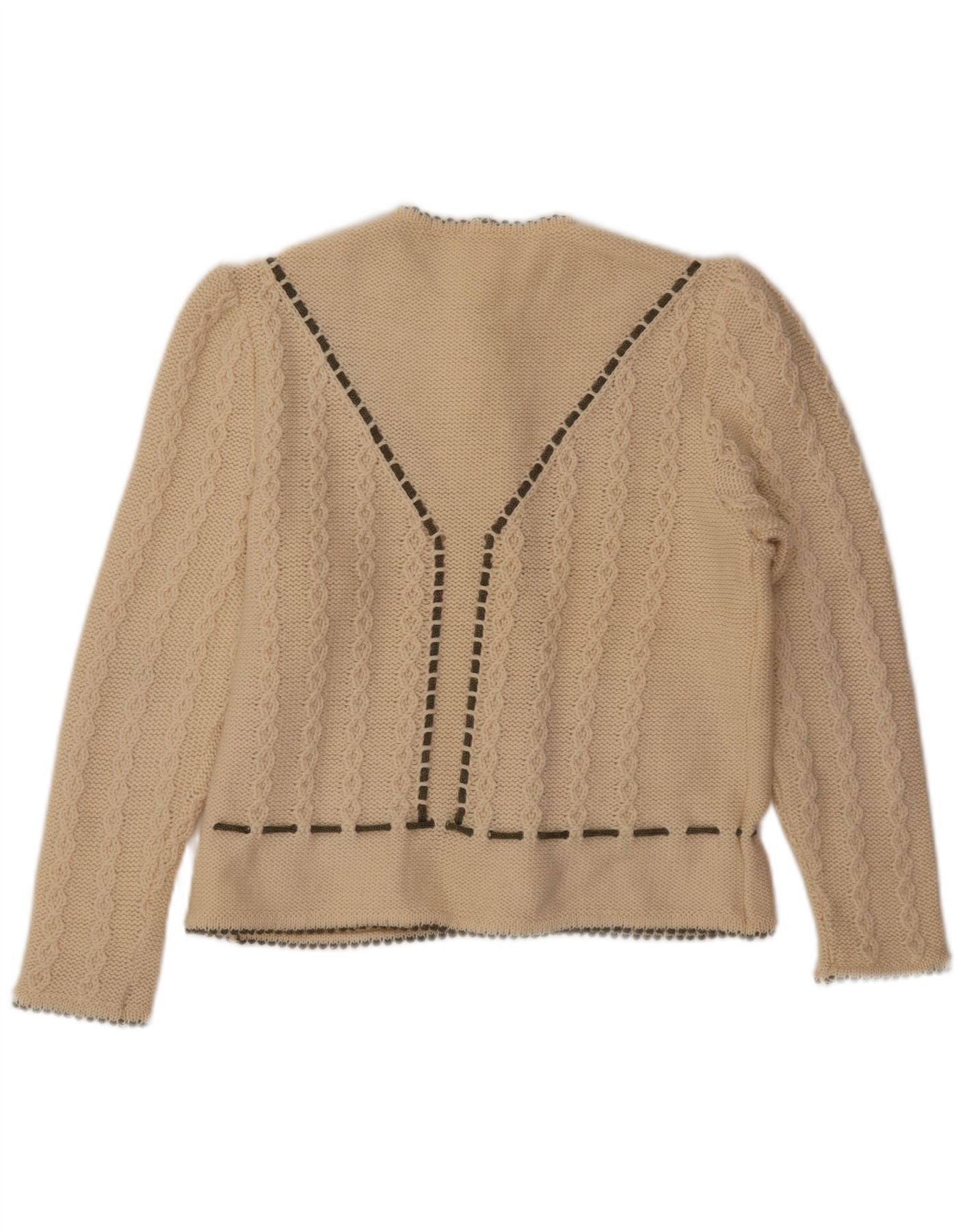 VINTAGE Femme Crop Cardigan Pull EU 46 XL Laine Beige
