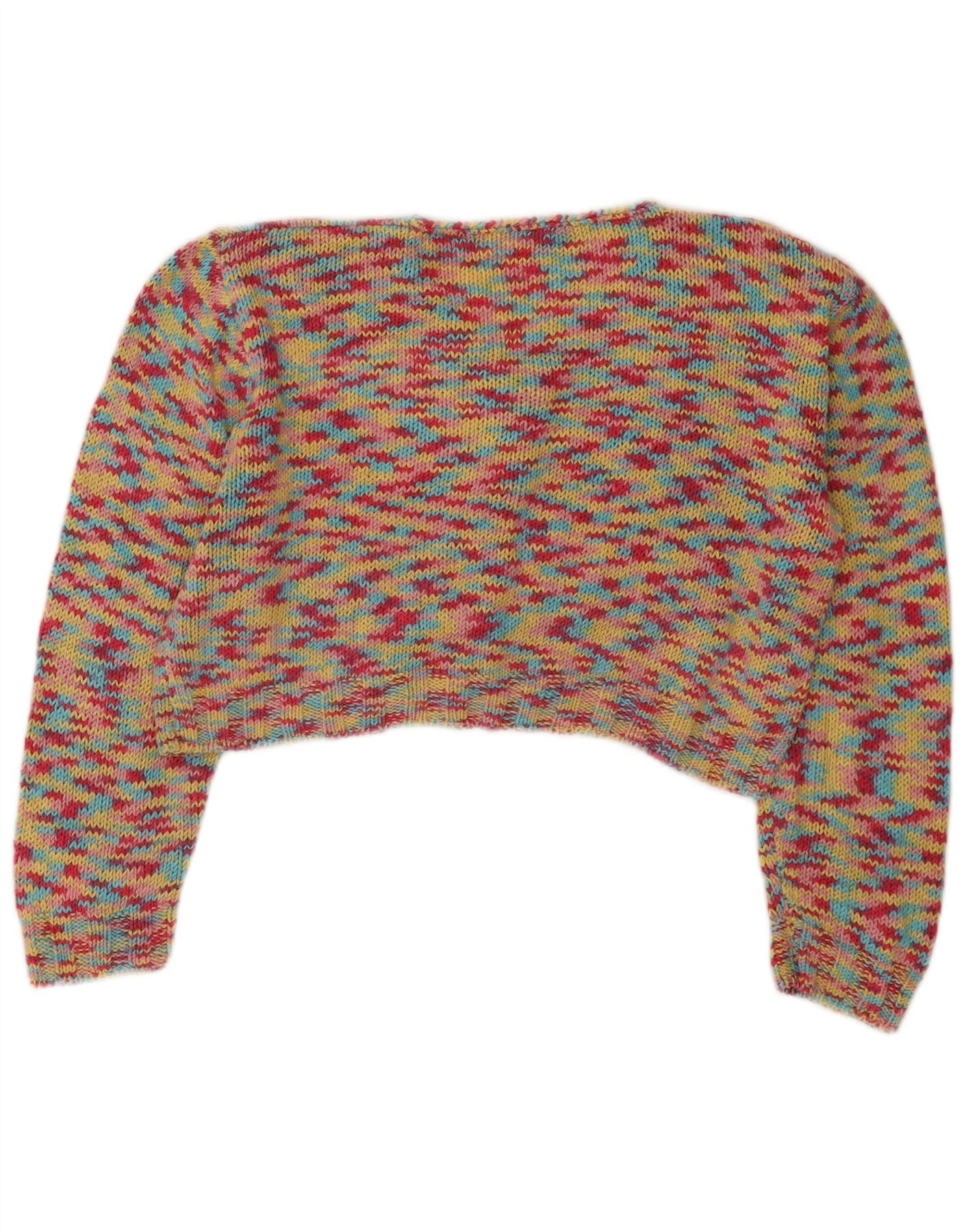 vintage Womens Crop Cardigan Sweater UK 14 Moyen Multicolore Moucheté