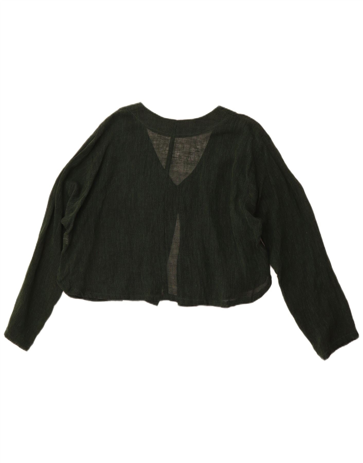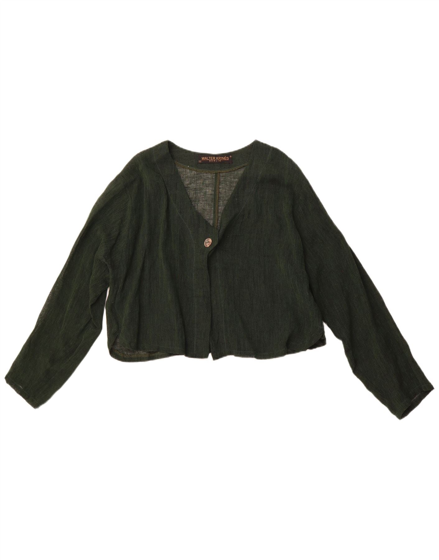 VINTAGE Femmes Crop Cardigan Top UK 16 Grand Coton Vert