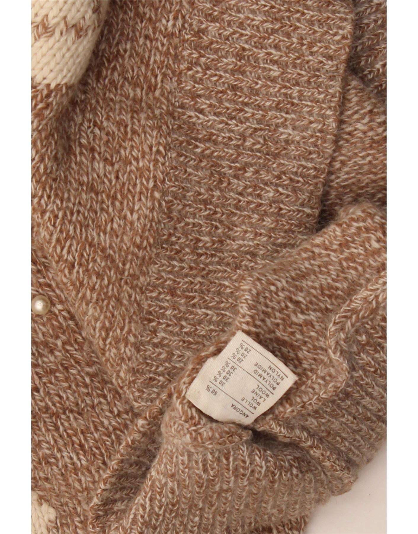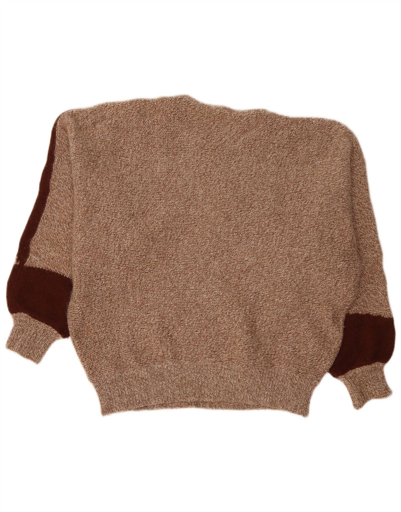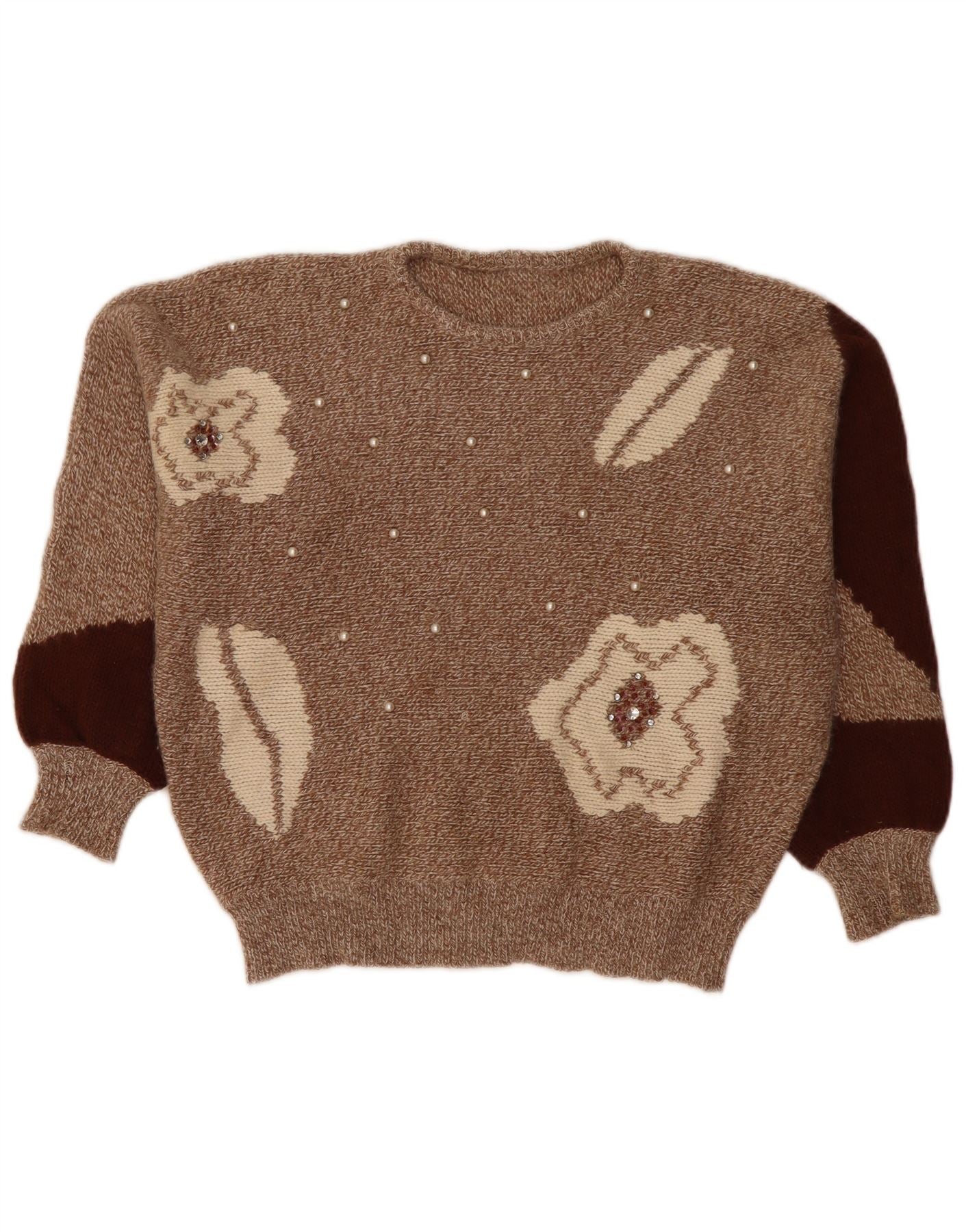 VINTAGE Femmes Crop Crew Neck Jumper Pull UK 14 Brun Moyen Moucheté