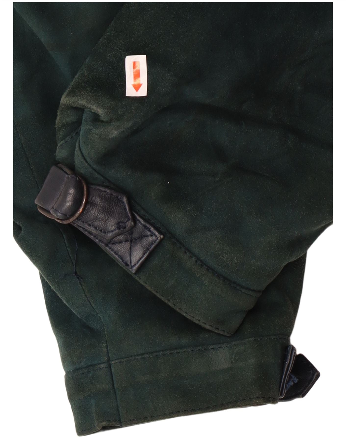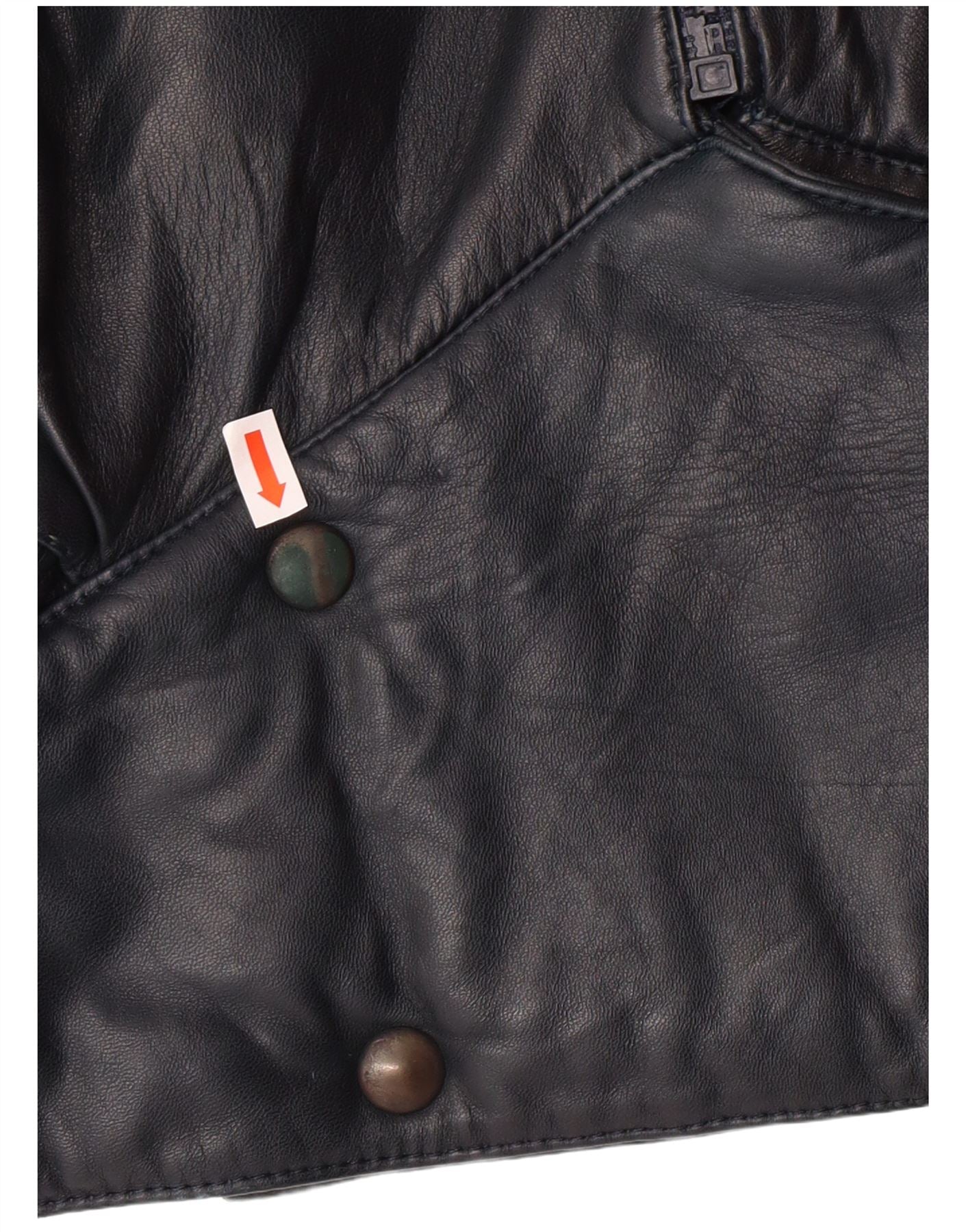 VINTAGE Veste en cuir crop femme UK 6 XS Bleu Marine
