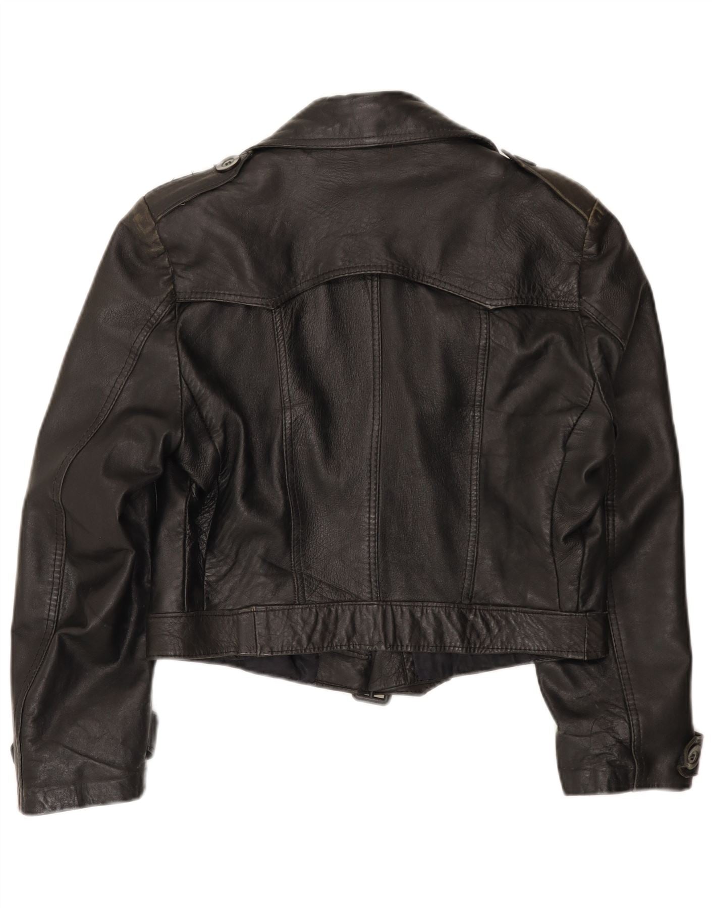 VINTAGE Veste militaire crop femme UK 12 Noir moyen