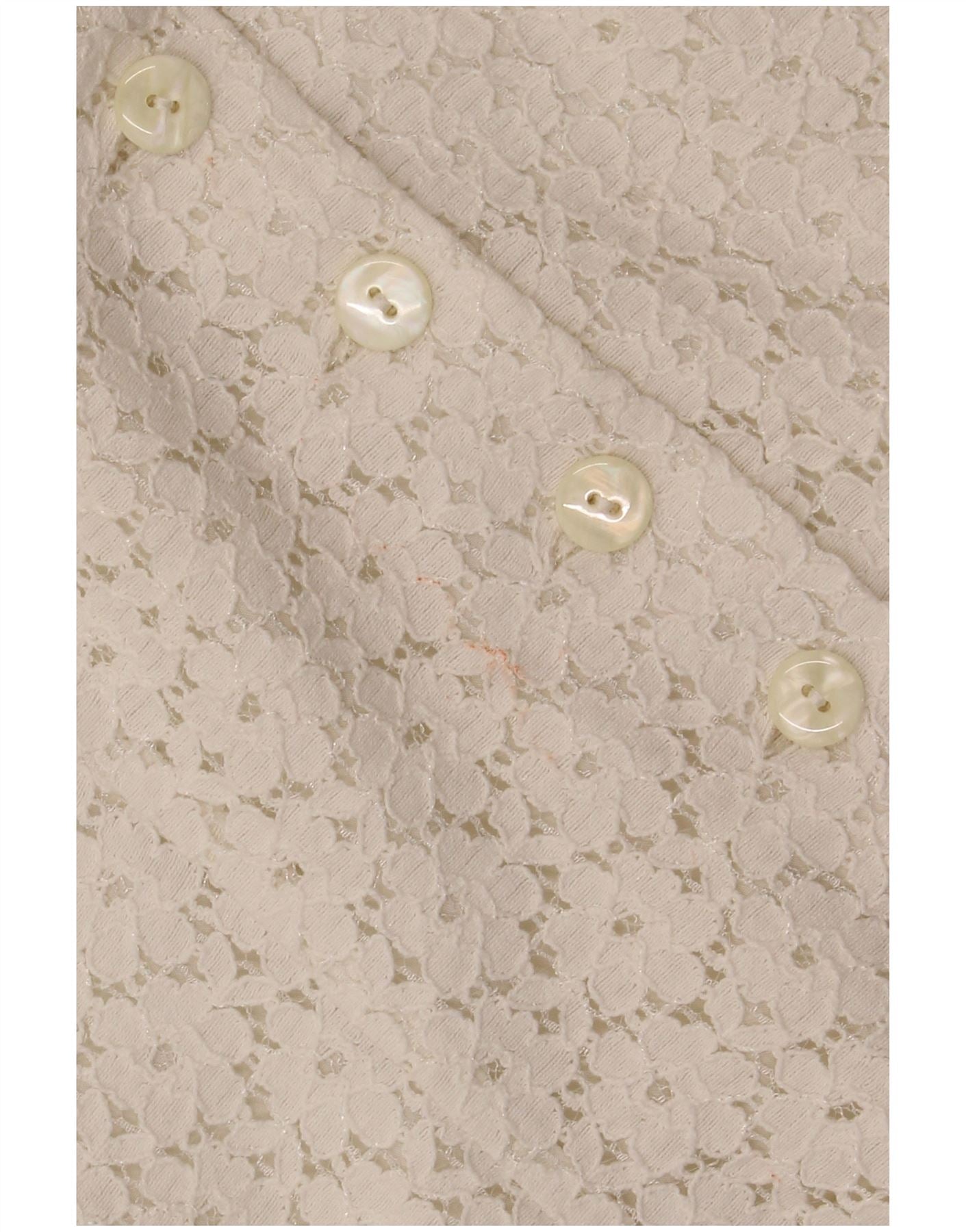VINTAGE Femme Crop Chemise À Manches Courtes Blouse IT 46 Grand Blanc Cassé Floral