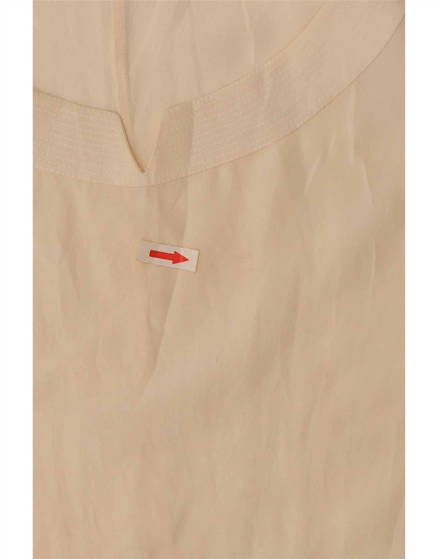 vintage Femmes Crop Sans Manches Blouse Top UK 14 Grande Soie Blanc Cassé