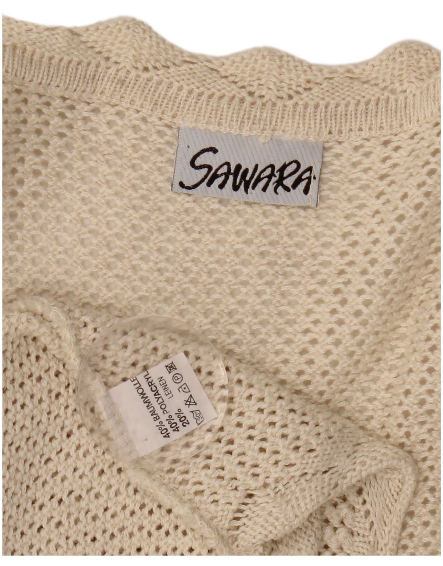 VINTAGE Femmes Crop Sans Manches Crochet Cardigan Pull UK 14 Grand Beige