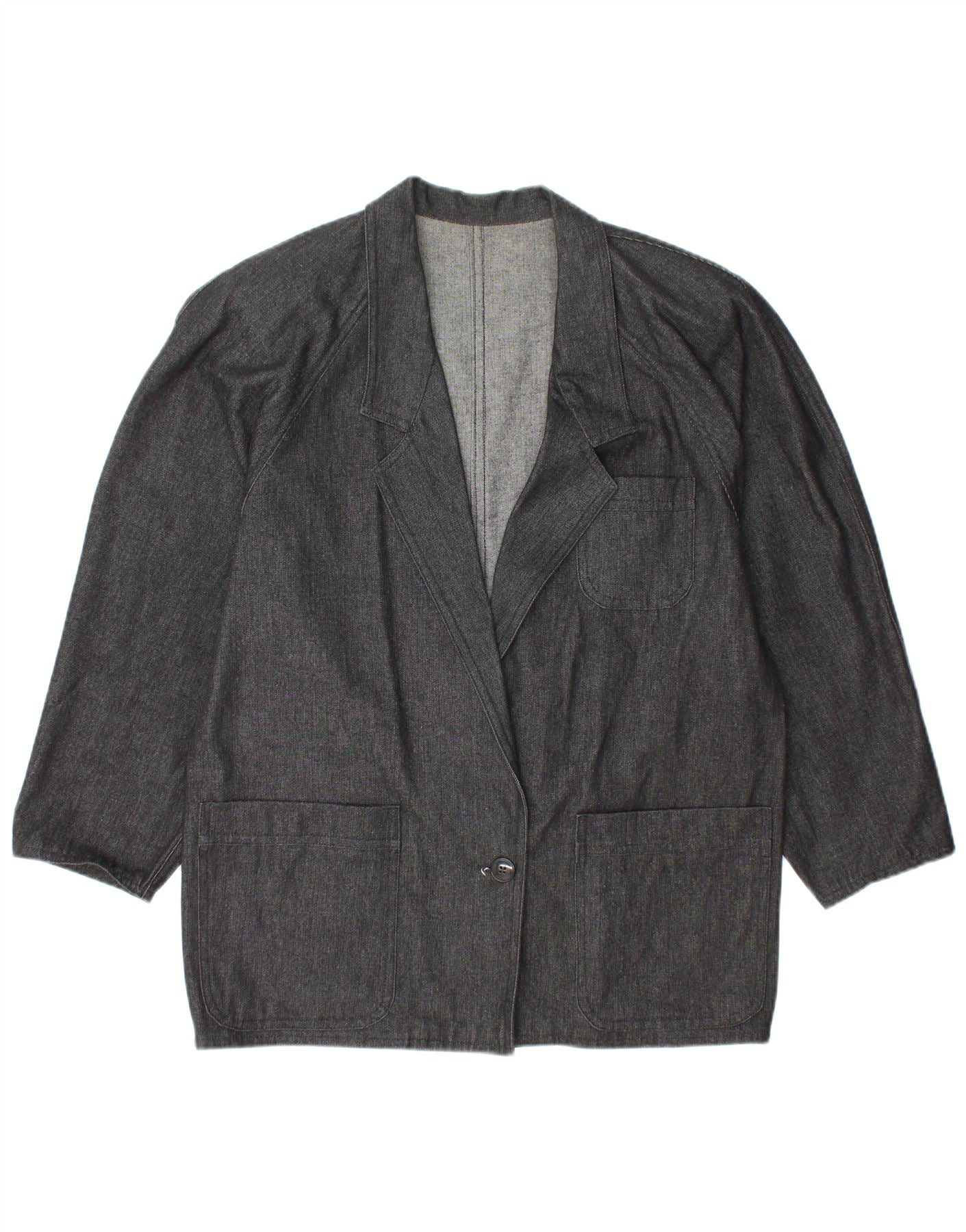 VINTAGE Femme Denim 1 Bouton Blazer Veste UK 14 Grand Gris