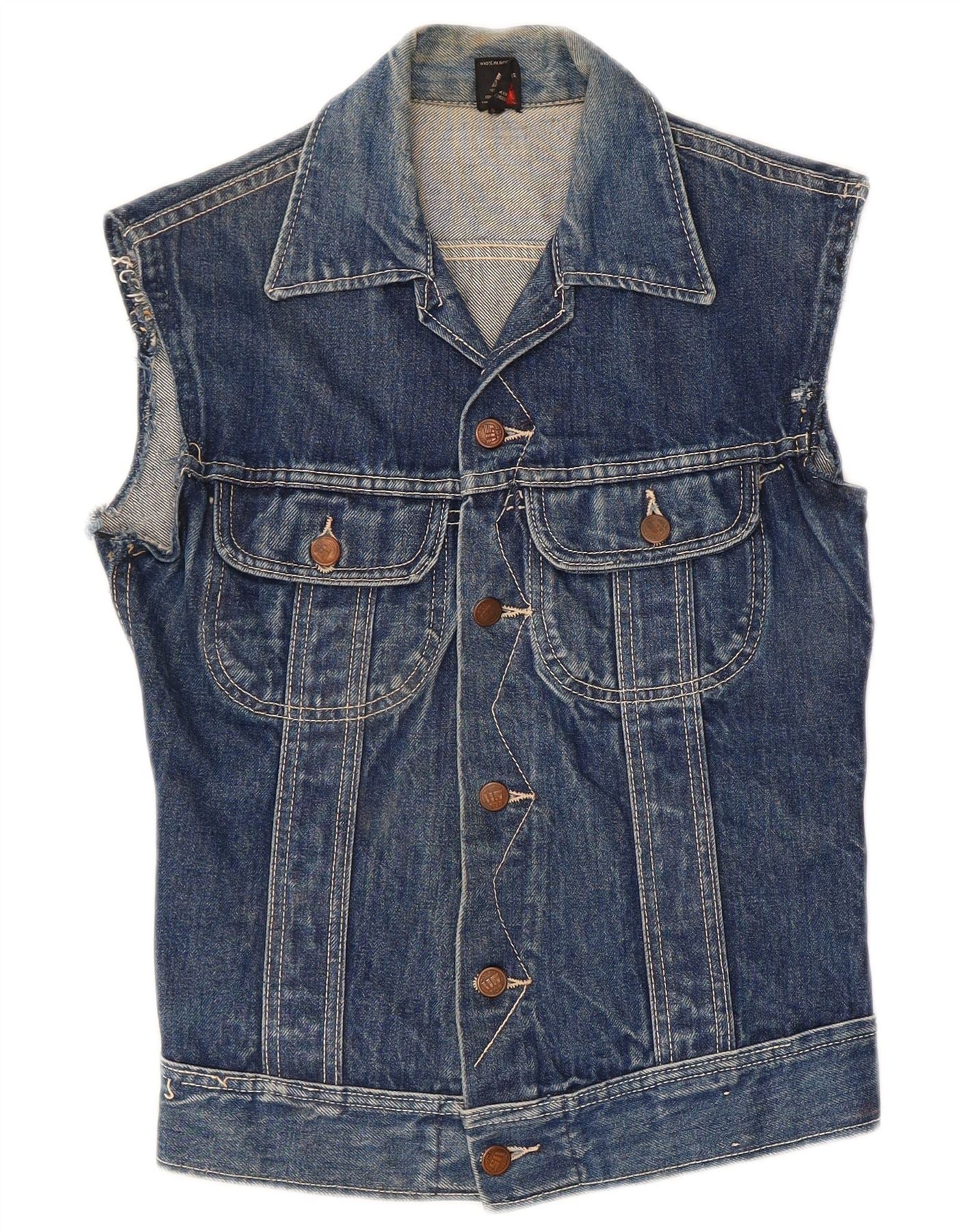 vintage Femme Denim Gilet UK 8 Petit Coton Bleu