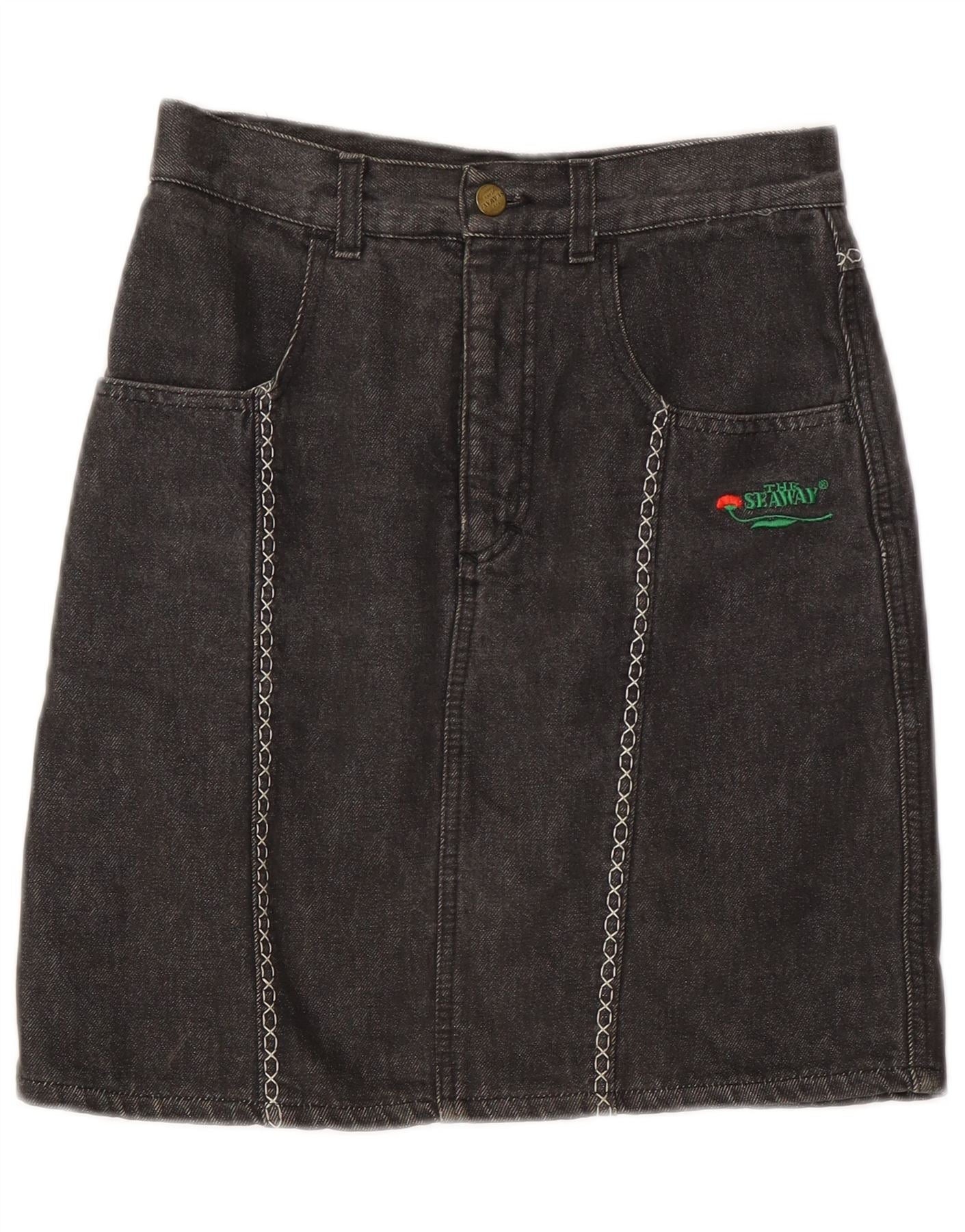 VINTAGE Jupe en Jean Femme W30 Gris Moyen