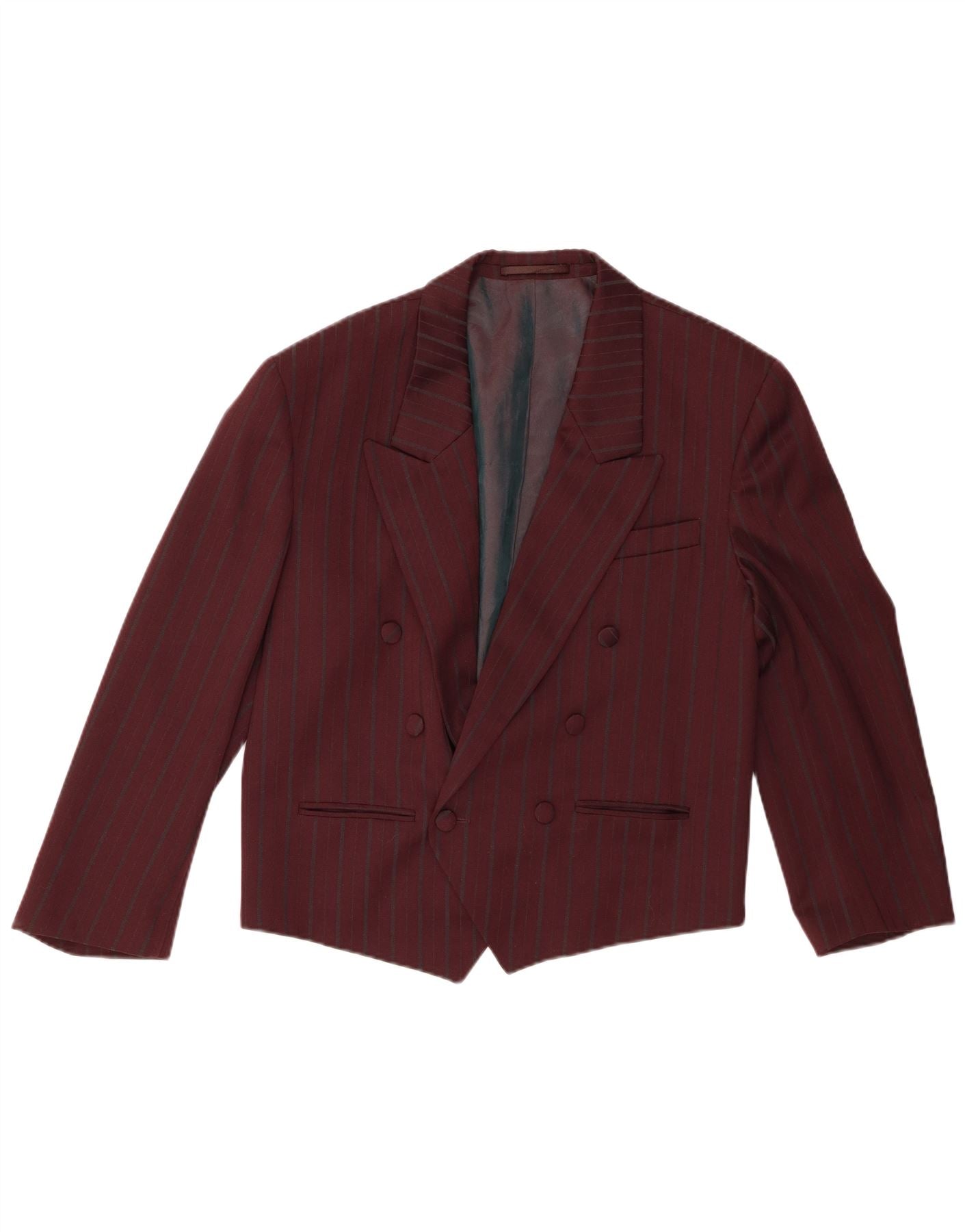 vintage Femme Double Breasted Blazer Veste IT 48 XL Bourgogne Pinstripe