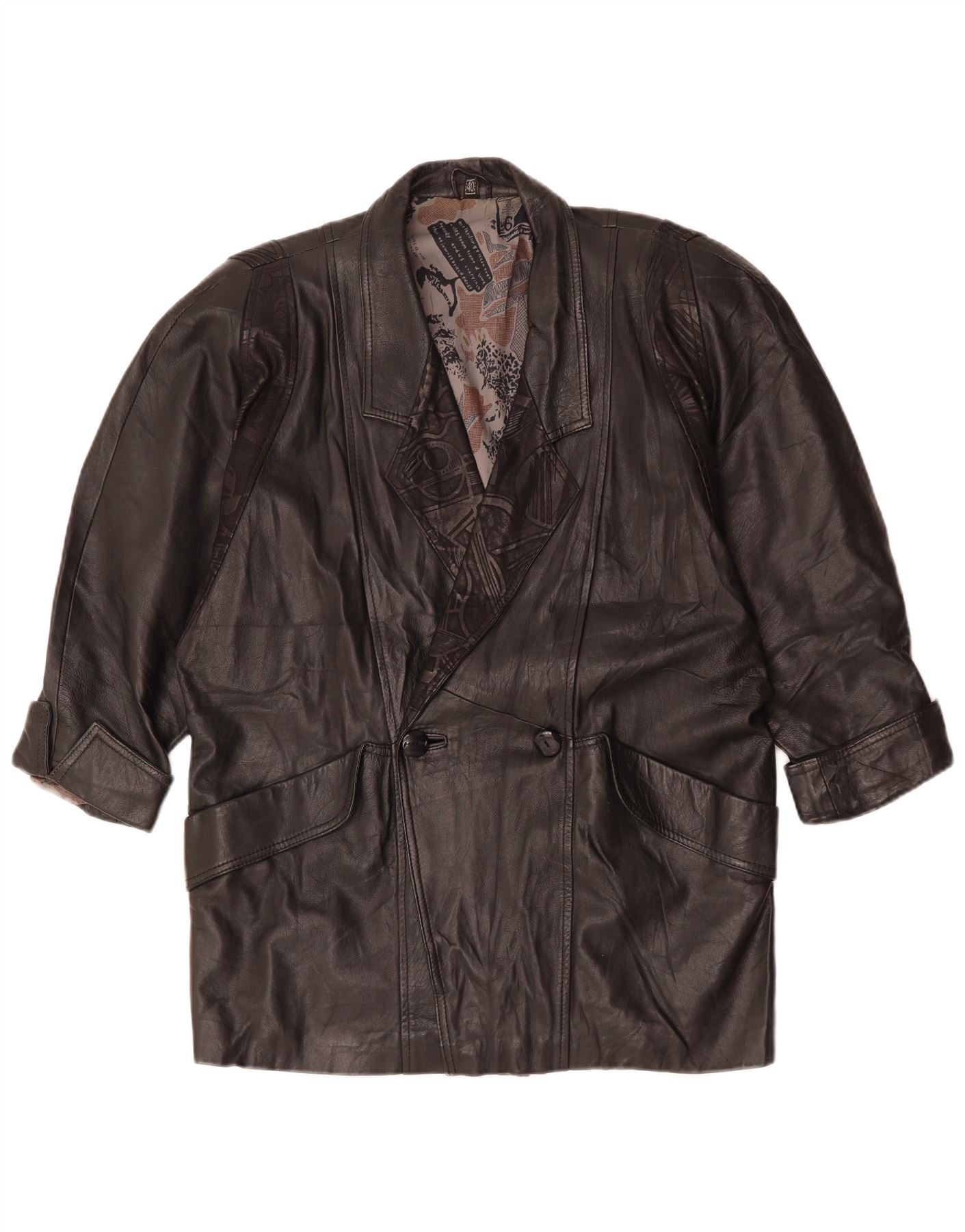 vintage Femme Double Breasted Veste en cuir surdimensionnée EU 40 Moyen Noir