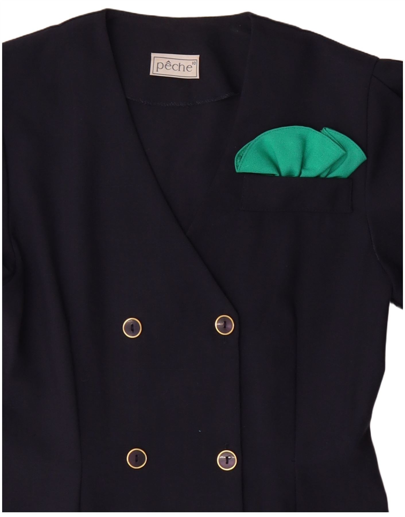 VINTAGE Femme Double Breasted Gaine Robe US 10 Grand Bleu Marine