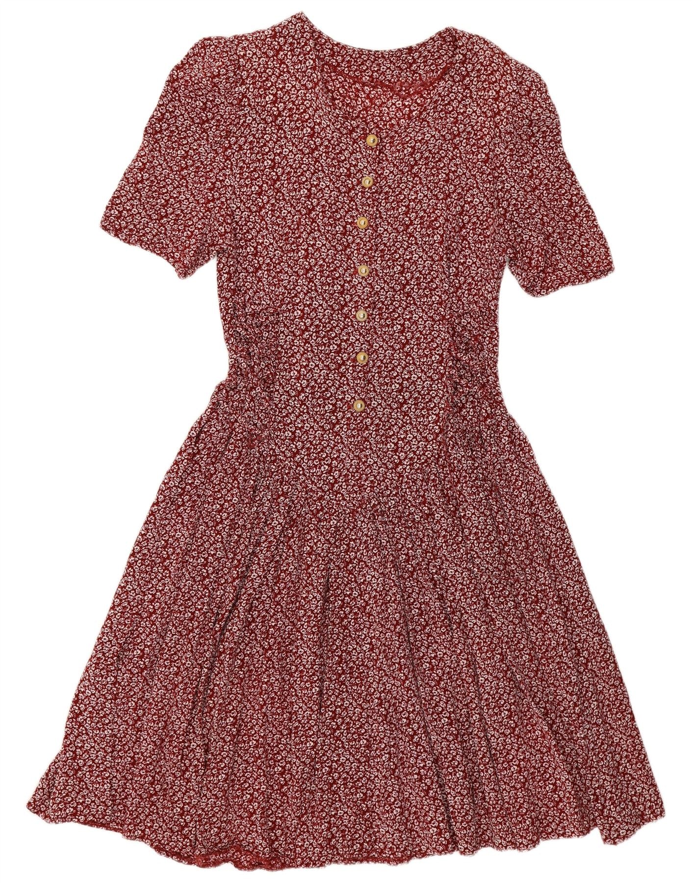 VINTAGE Robe Empire Femme UK 14 Grand Bordeaux Floral