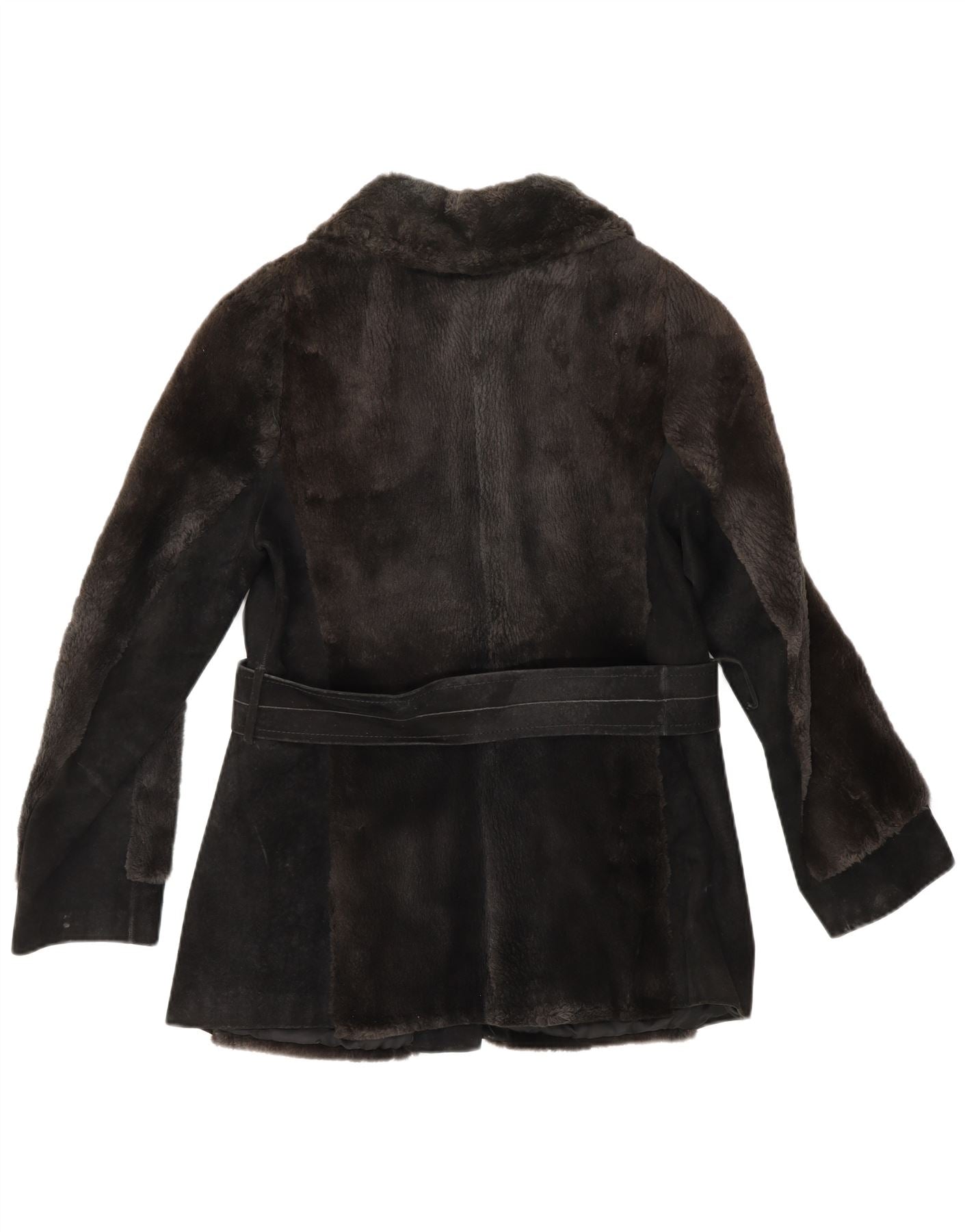 Veste en daim fausse fourrure femme vintage UK 12 brun moyen