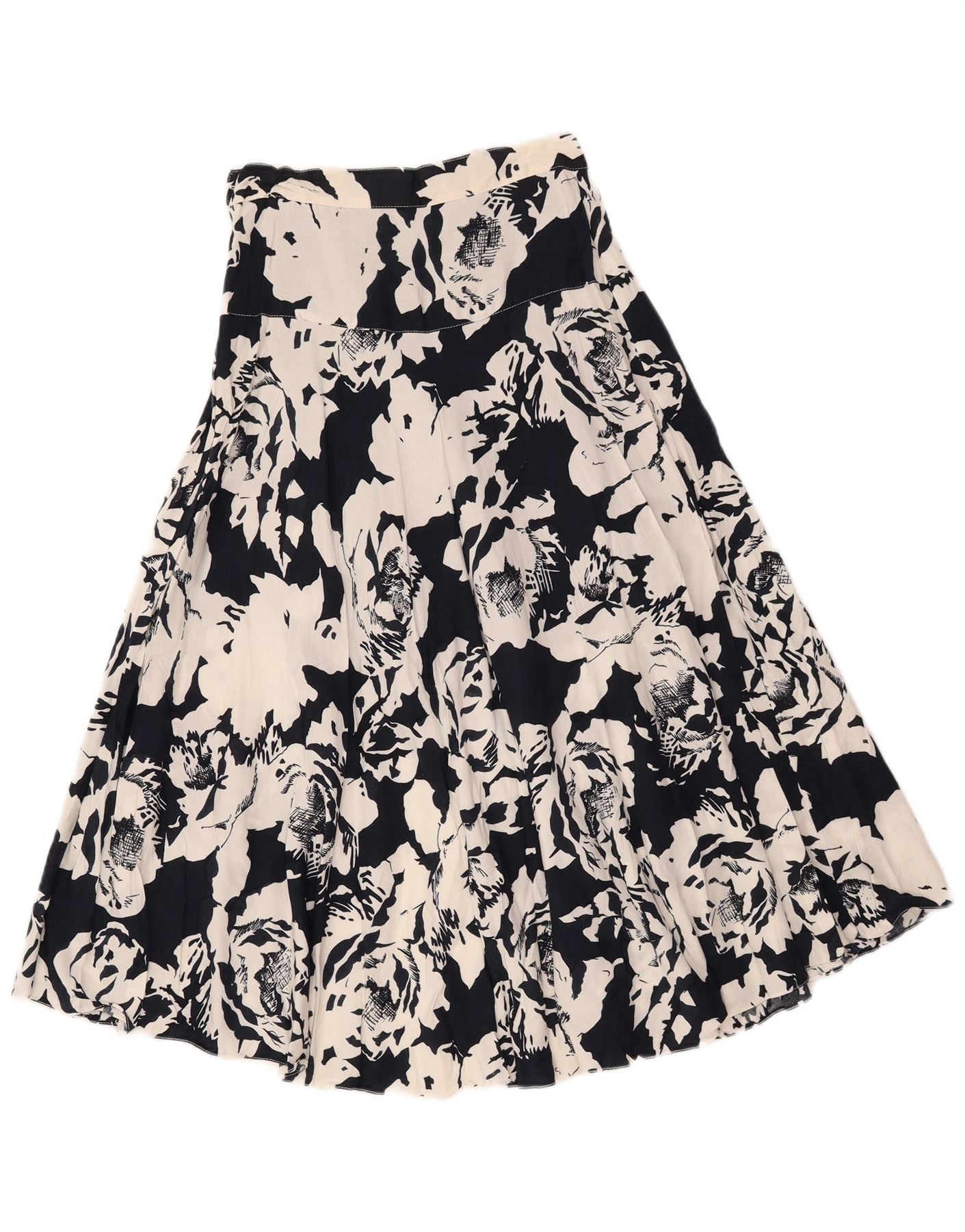 jupe évasée femme vintage IT 40 Petit W25 Polyester Floral Noir