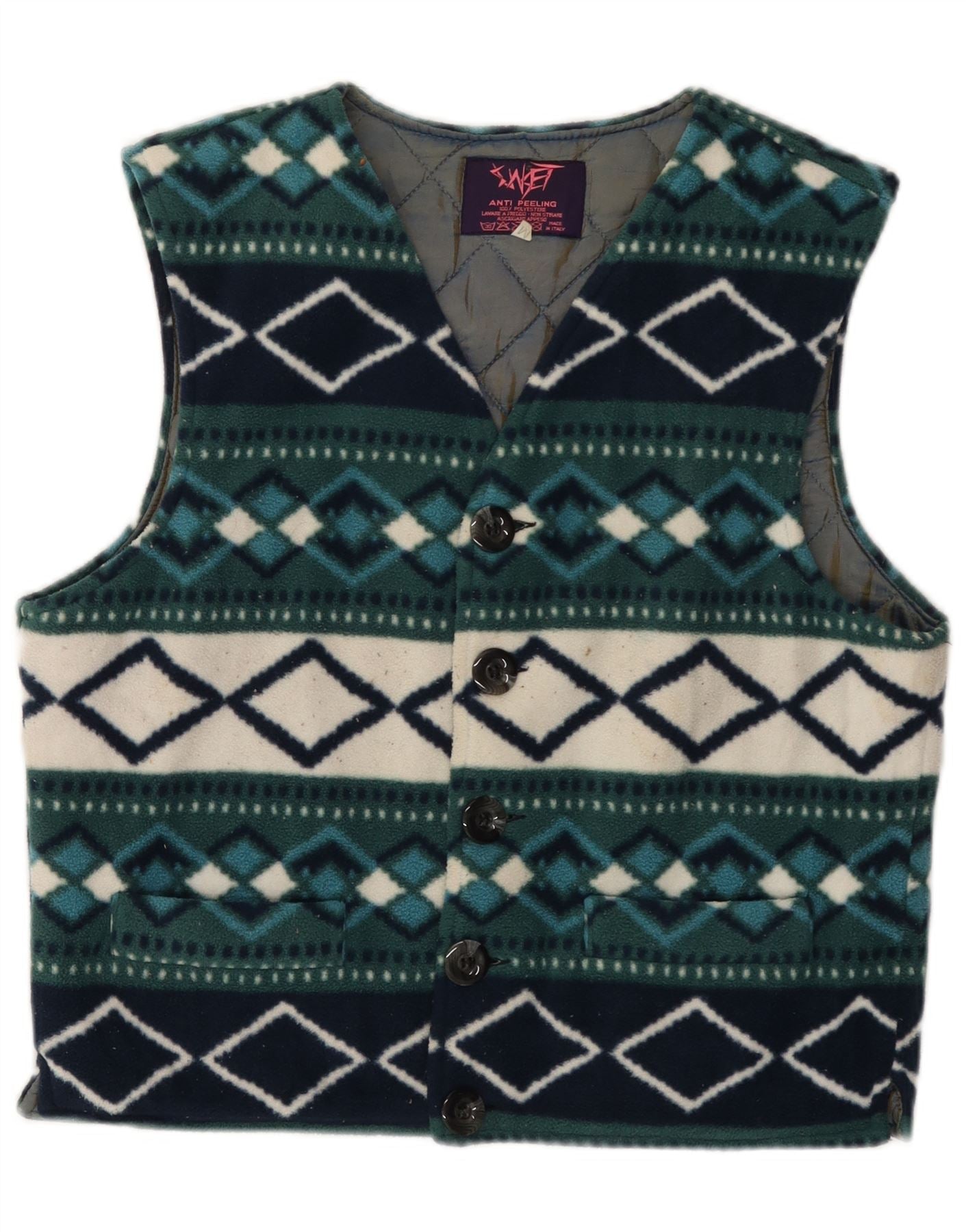 vintage Femme Polaire Gilet UK 14 Moyen Vert Argyle/Diamant Rétro
