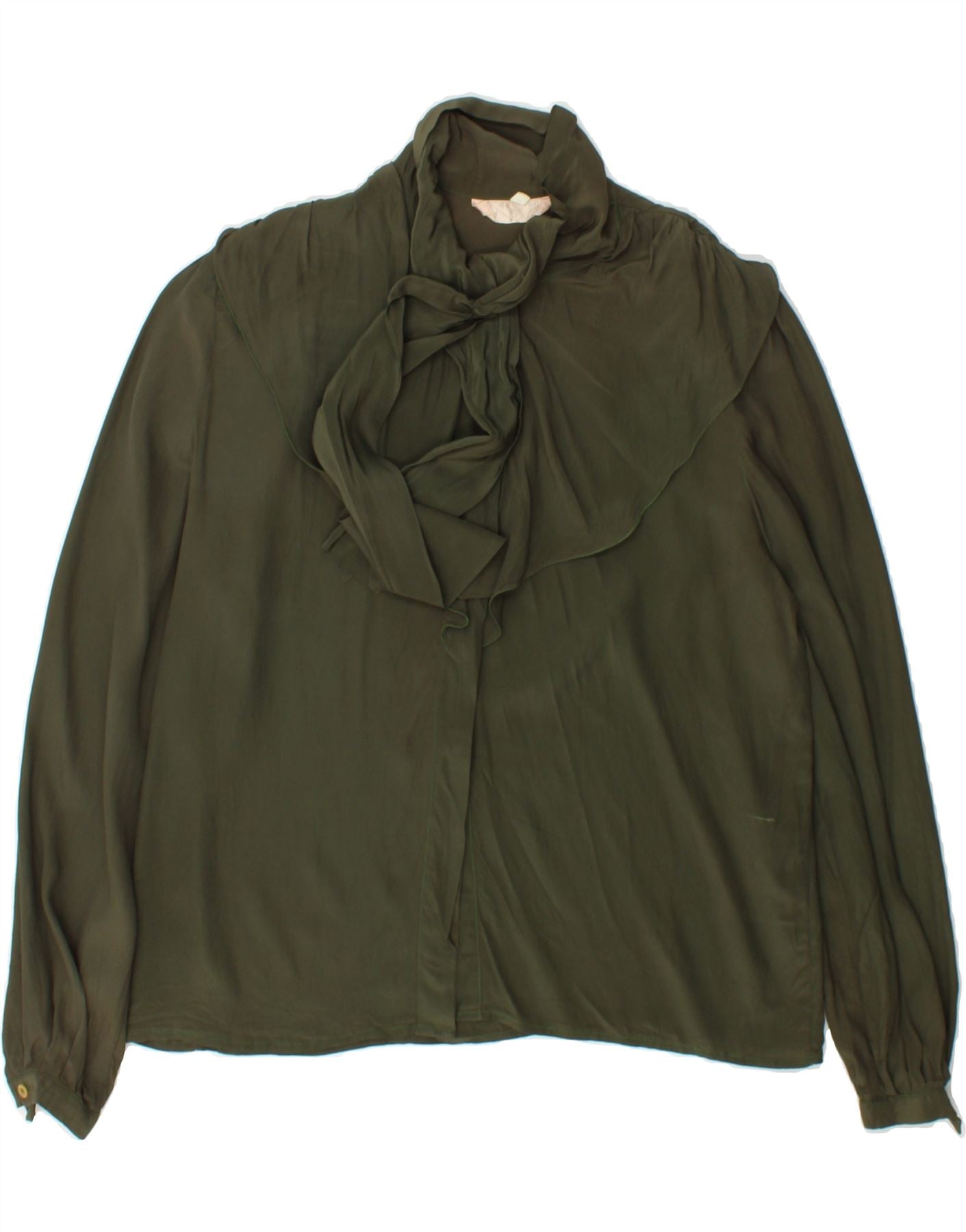 VINTAGE Womens Front Tie Shirt Blouse IT 42 Medium Khaki