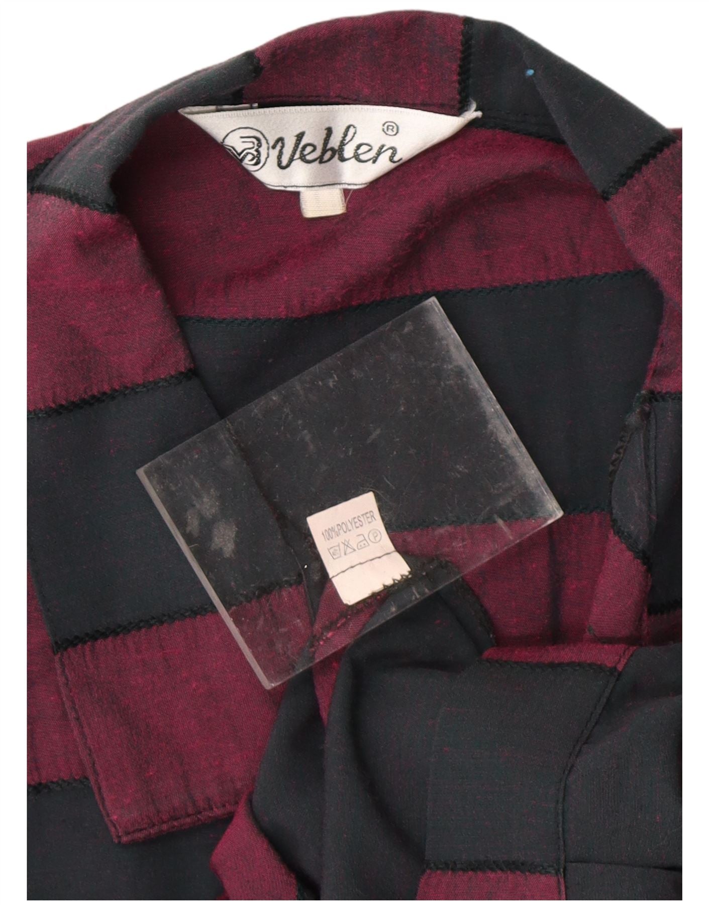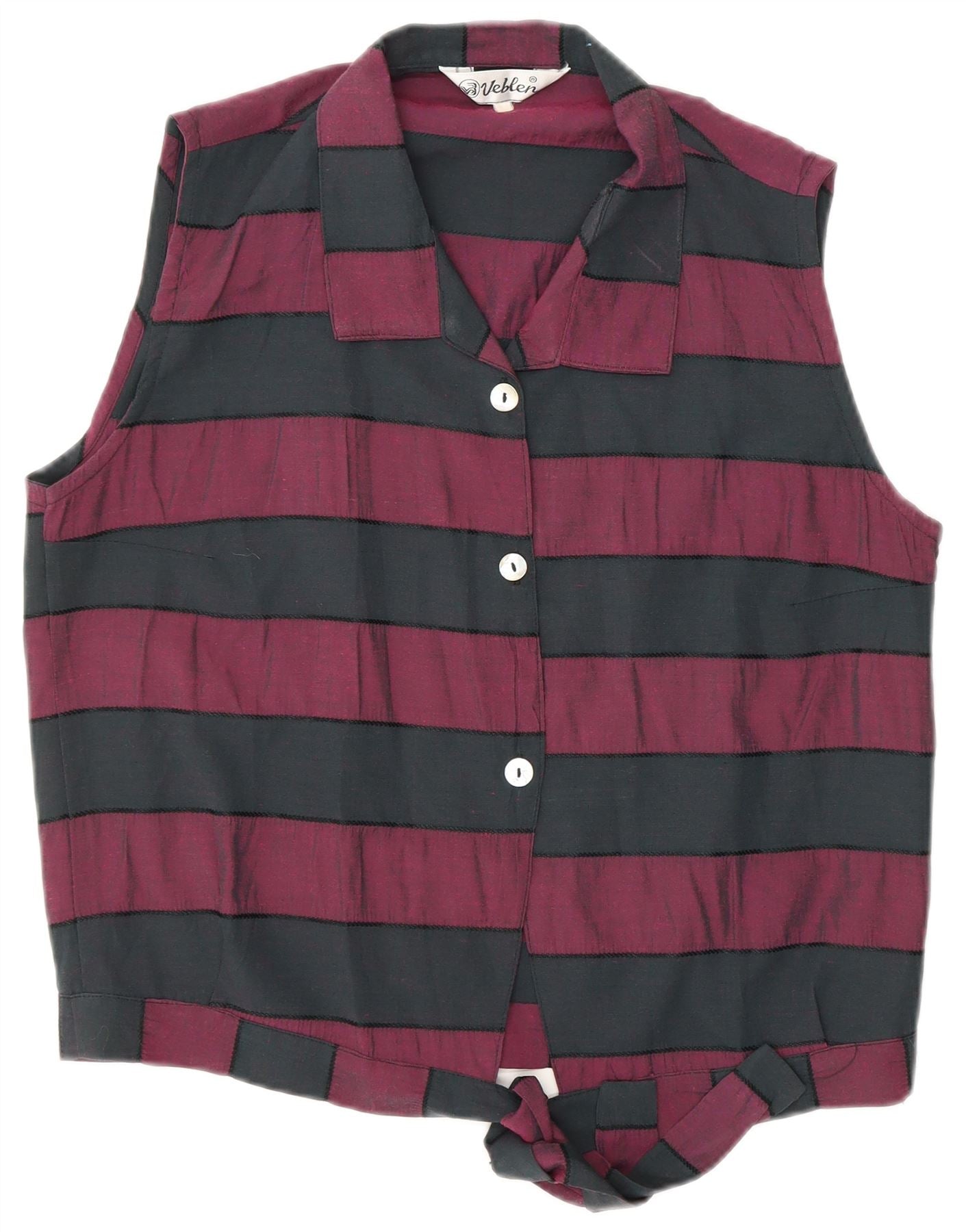 VINTAGE Femme Front Tie Shirt Blouse UK 16 Moyen Noir Rayé