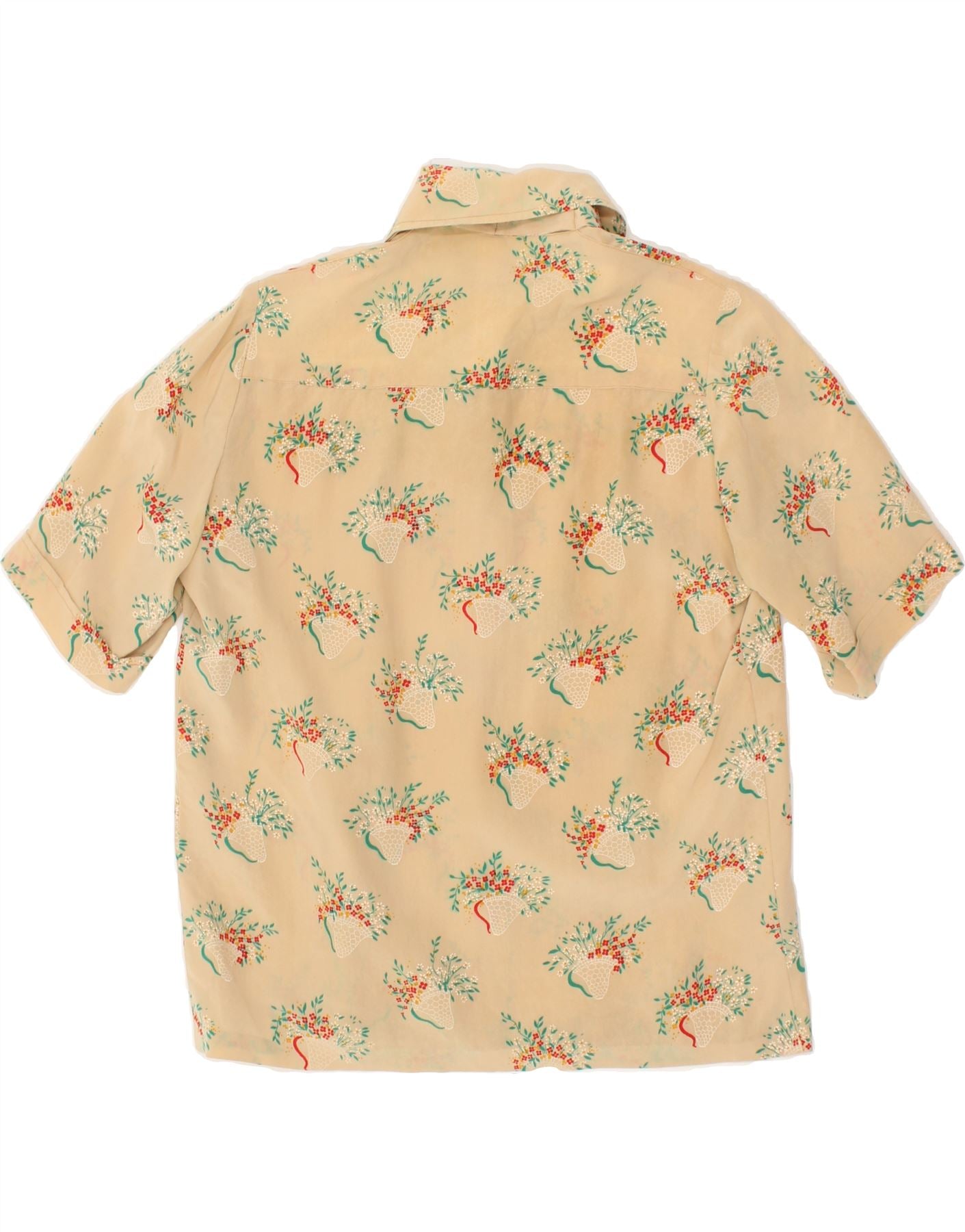 VINTAGE Womens Front Tie Short Sleeve Shirt UK 14 Large Beige Floral