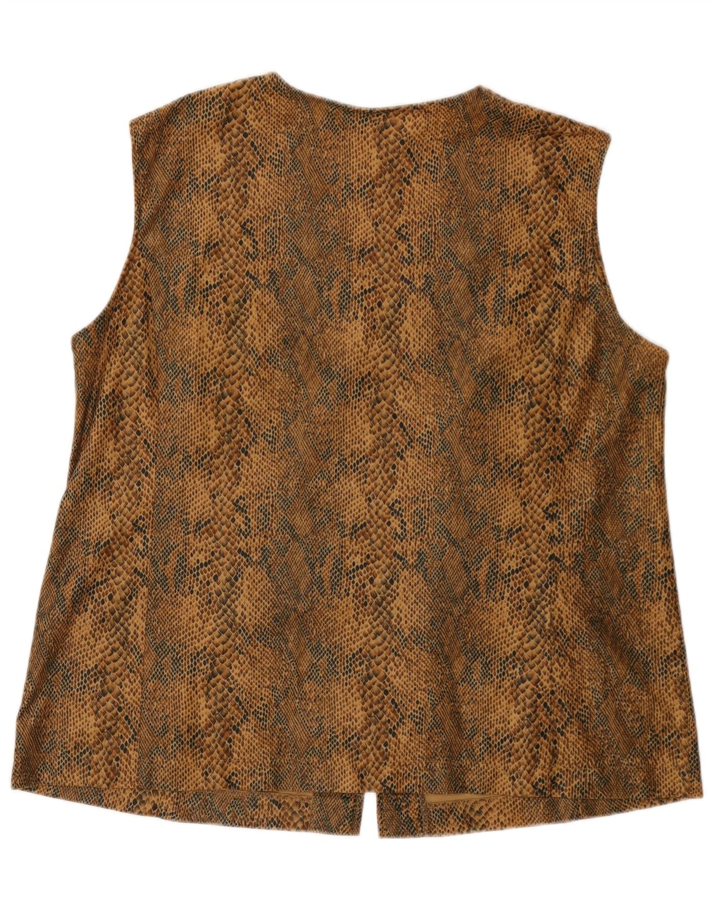 VINTAGE Gilet Femme UK 18 XL Marron Imprimé Animal Polyester