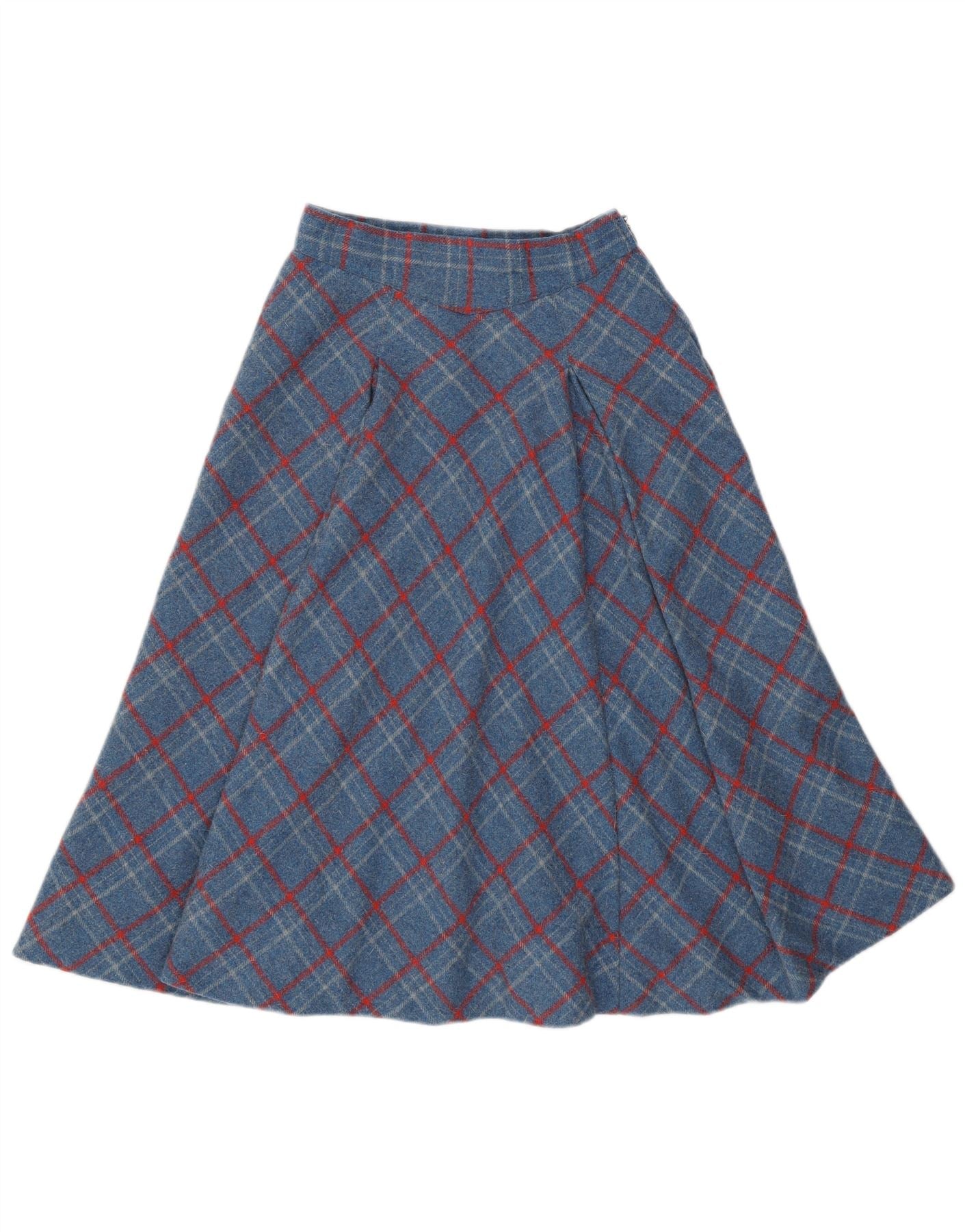 VINTAGE Jupe trapèze taille haute pour femme W24 XS Bleu à carreaux