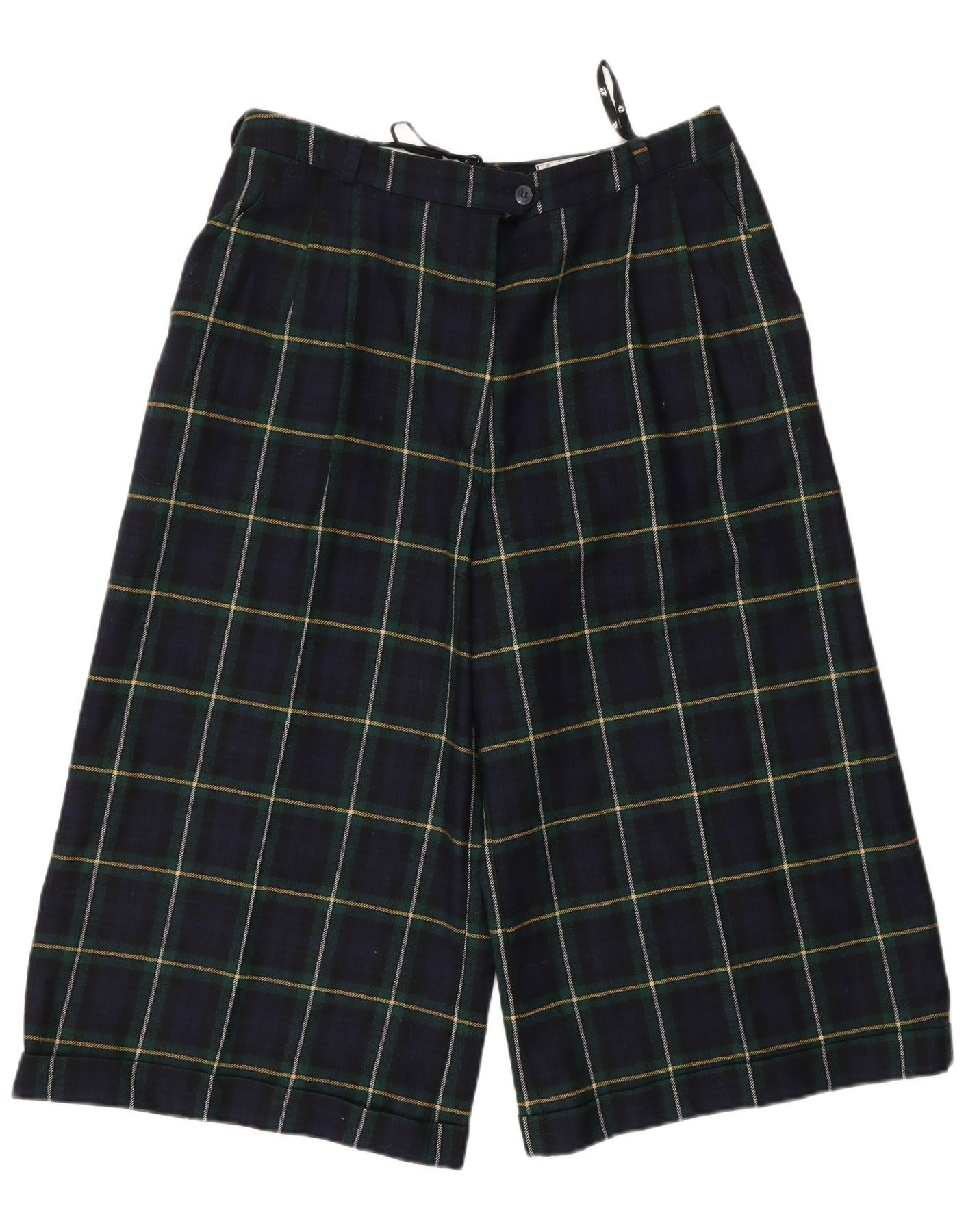 vintage Femme Taille Haute Bermuda Shorts EU 42 Grand W30 Bleu Marine Check