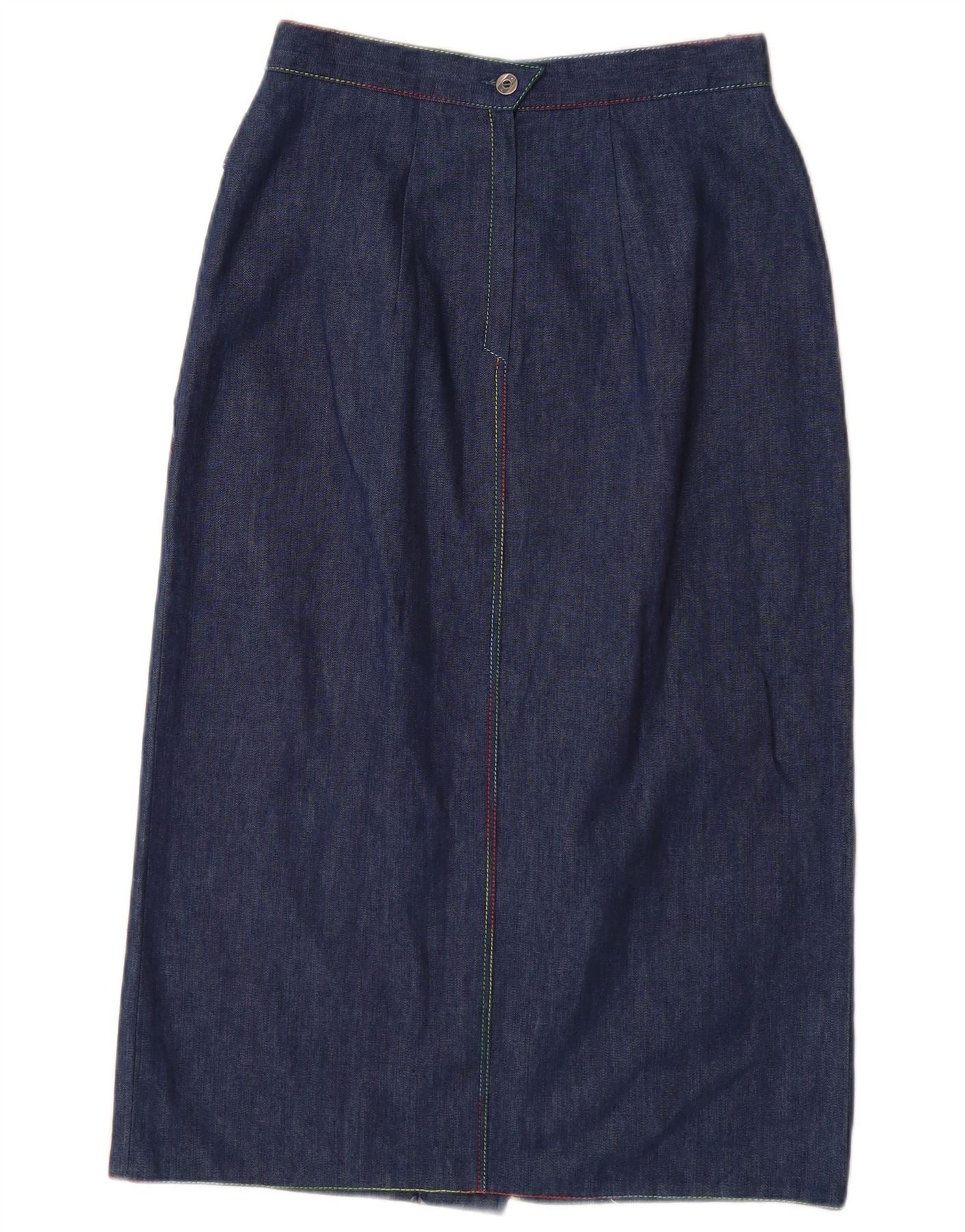 VINTAGE Jupe en denim taille haute femme EU 38 Moyen W26 Coton bleu marine