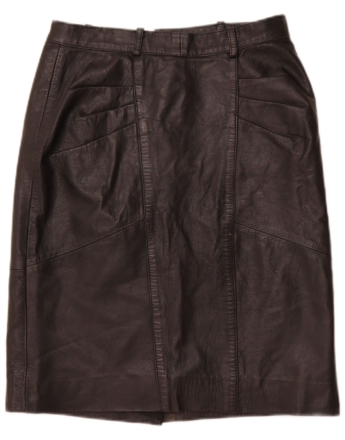 VINTAGE Jupe en cuir taille haute femme IT 48 XL W28 Cuir noir