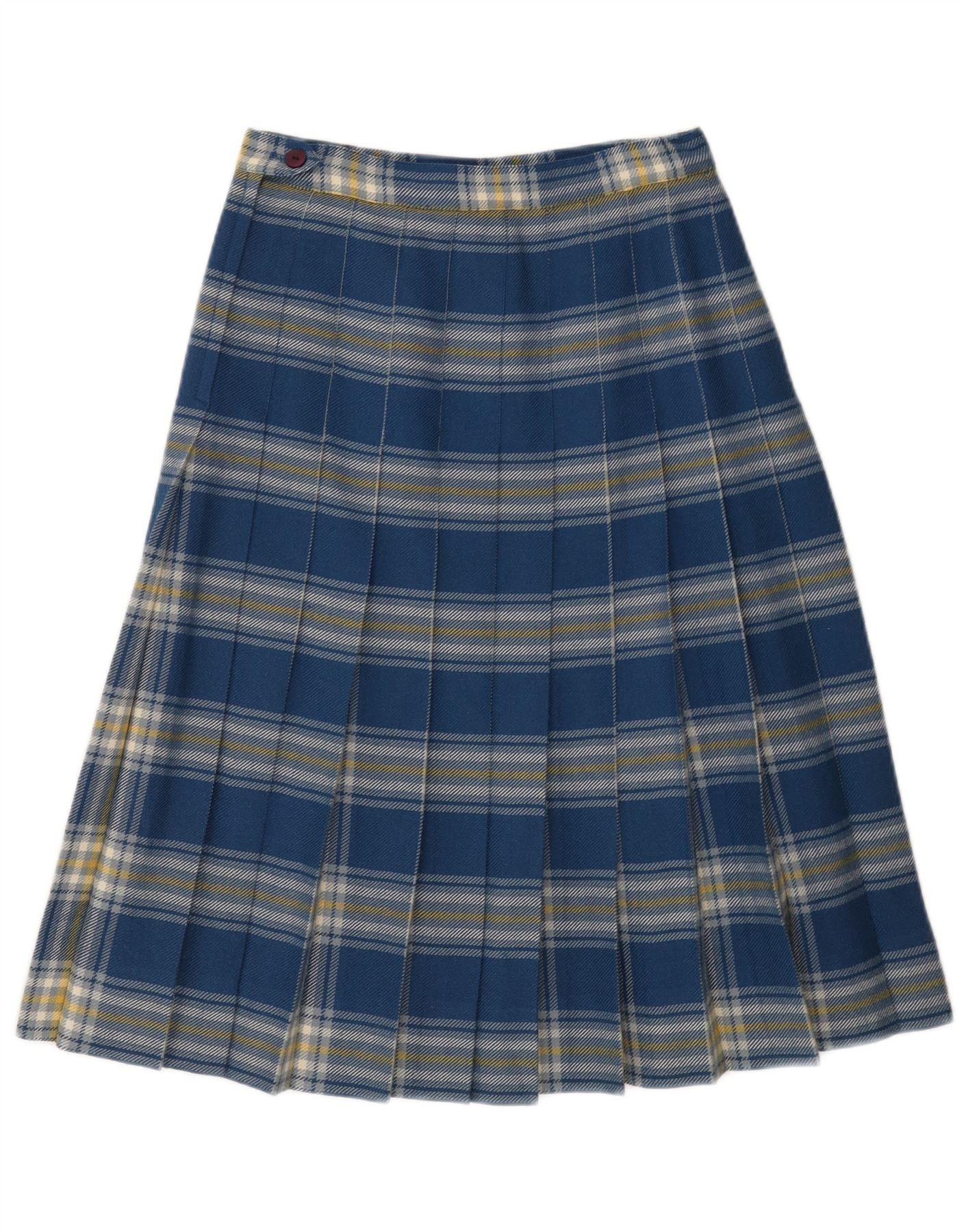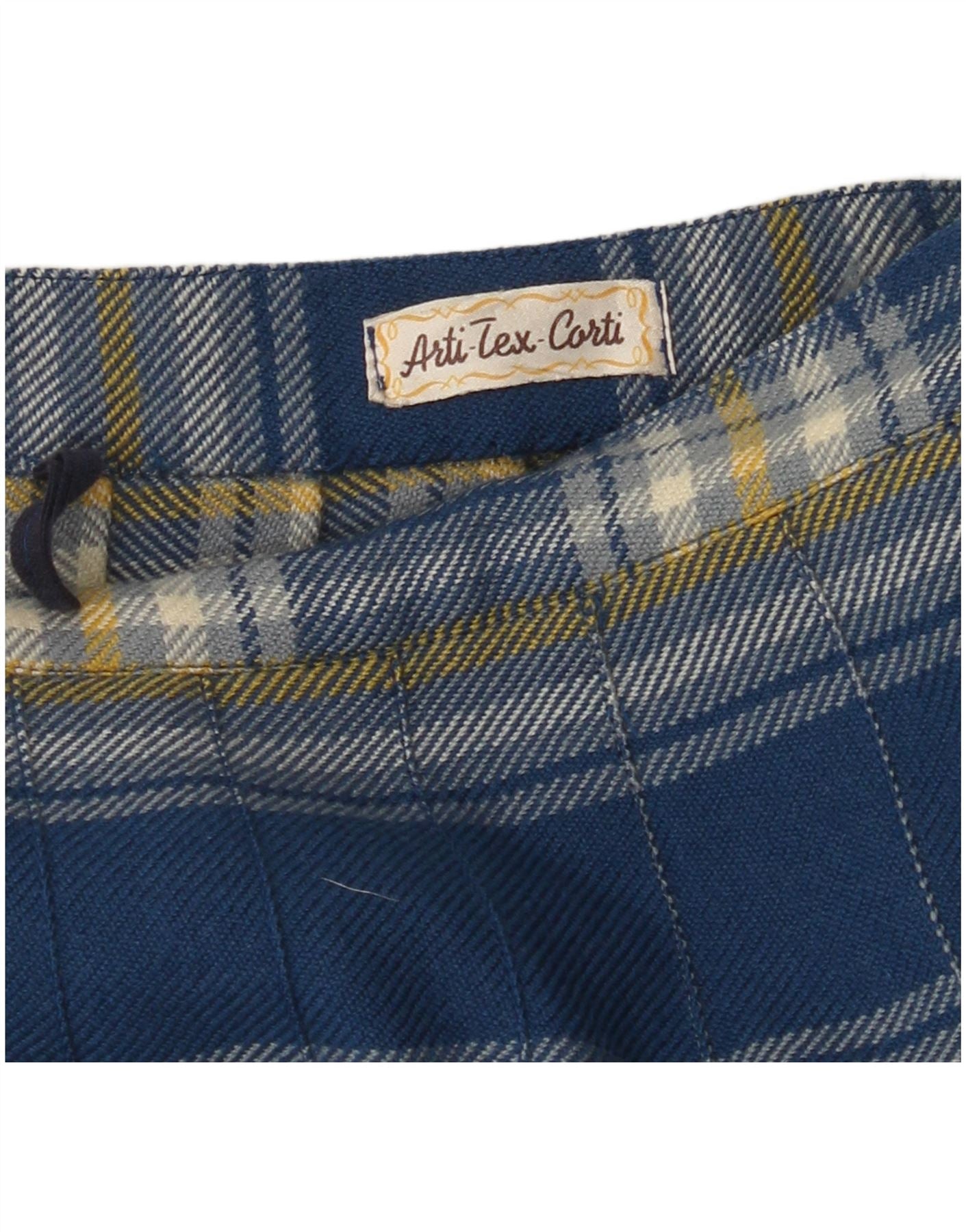 VINTAGE Jupe trapèze plissée taille haute pour femme W26 Petit carreaux bleus