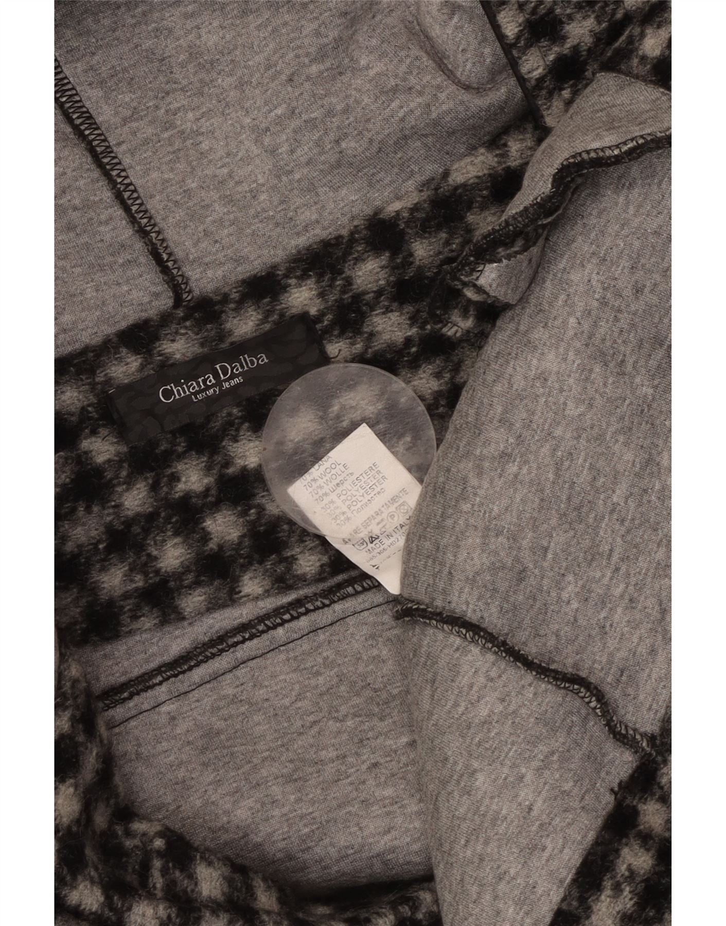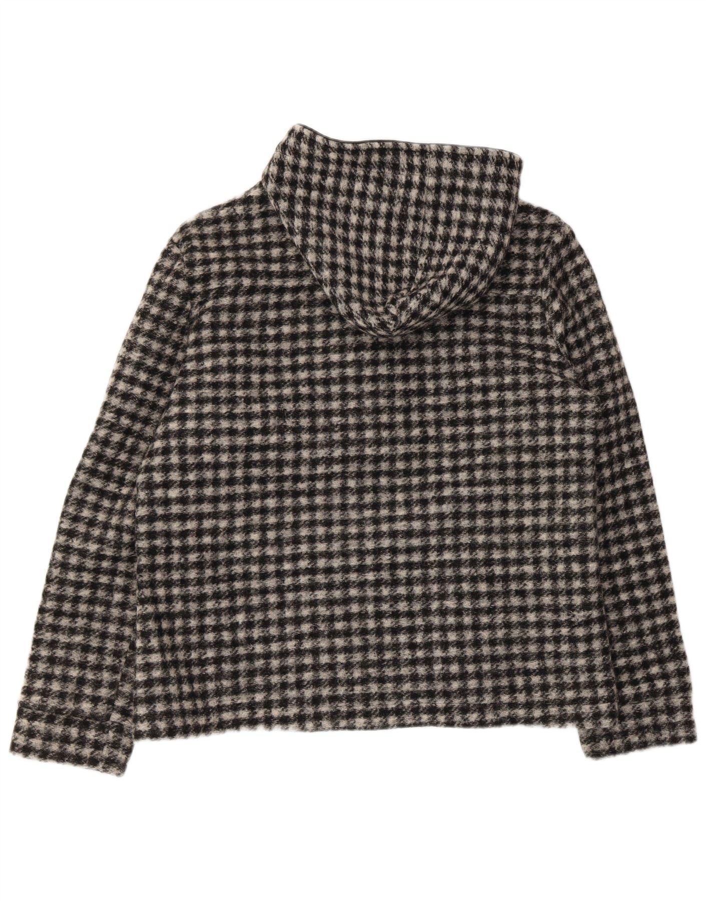 VINTAGE Veste bomber à capuche femme UK 18 XL Laine à carreaux noirs
