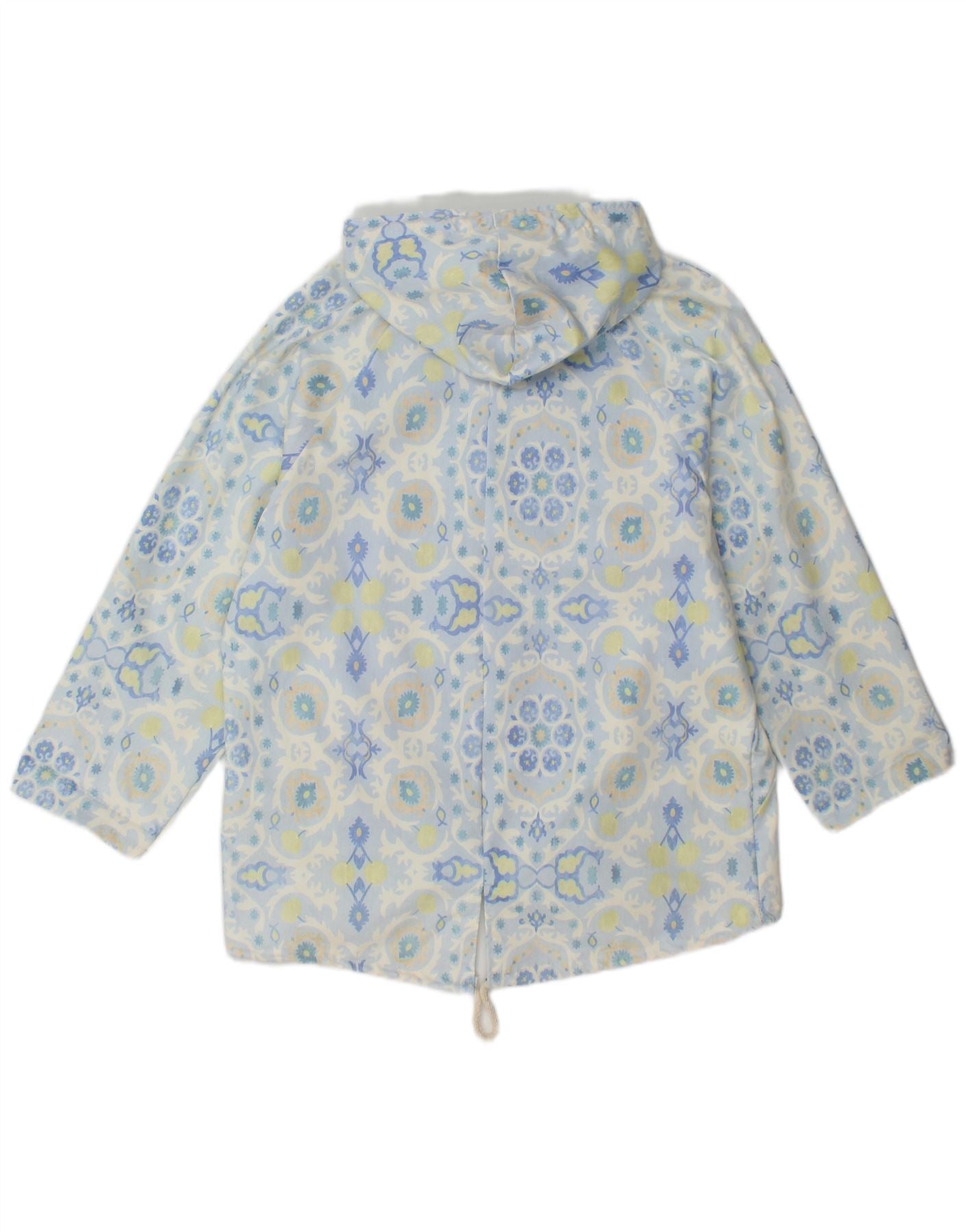 VINTAGE Veste Parka à capuche femme UK 16 Grand coton floral bleu