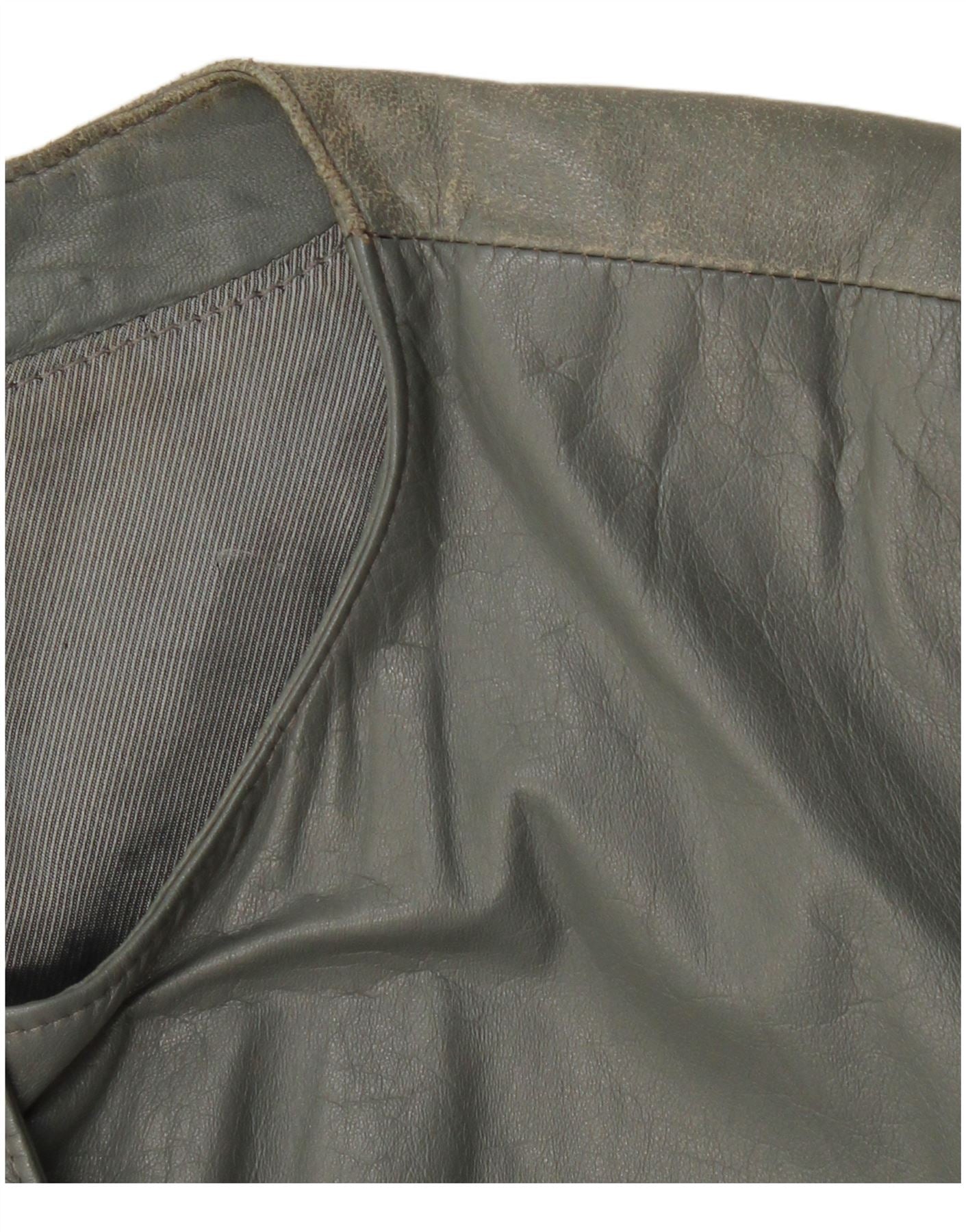 VINTAGE Veste bomber en cuir femme UK 12 Cuir gris moyen