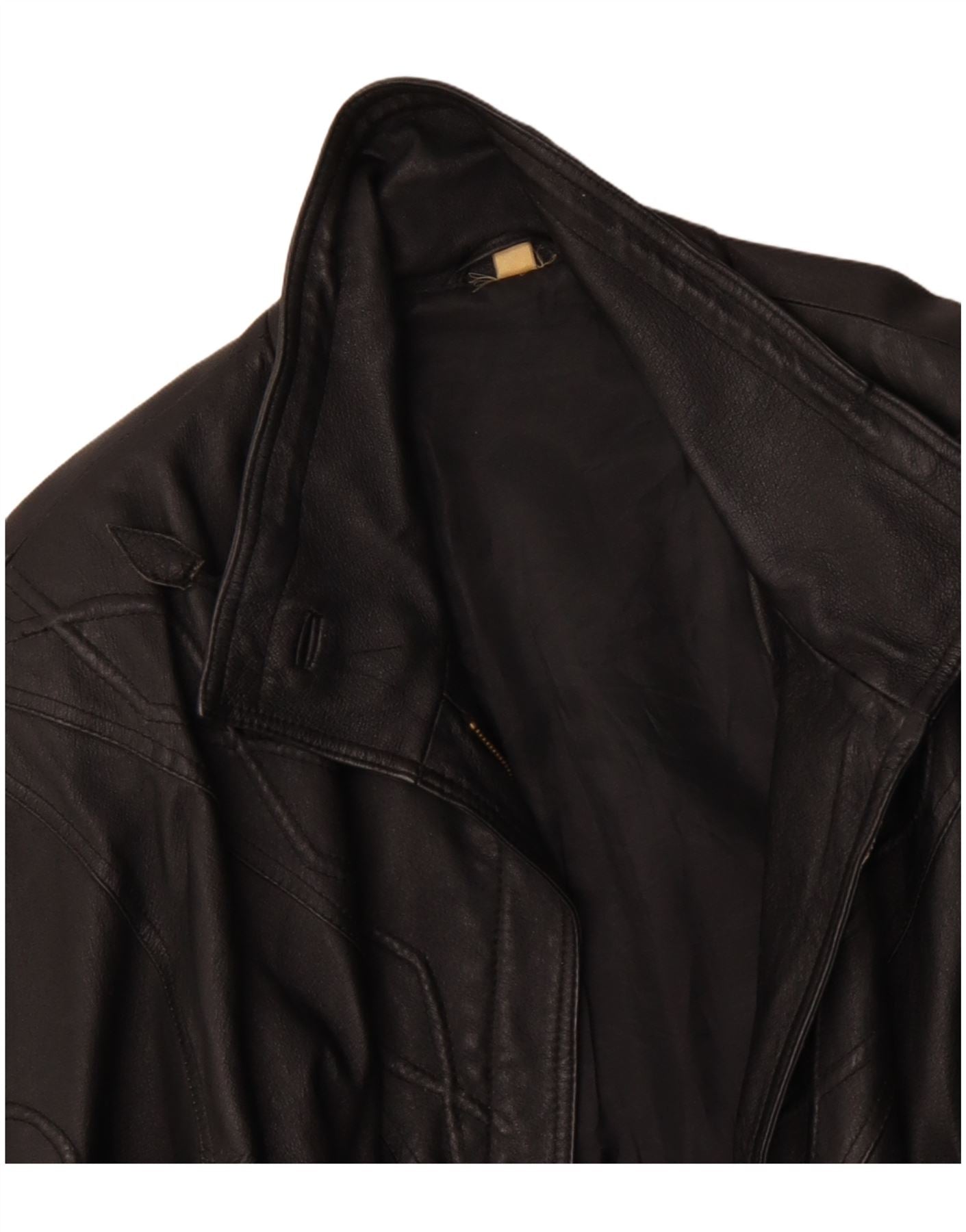 VINTAGE Womens Leather Coat UK 10 Small Black Leather